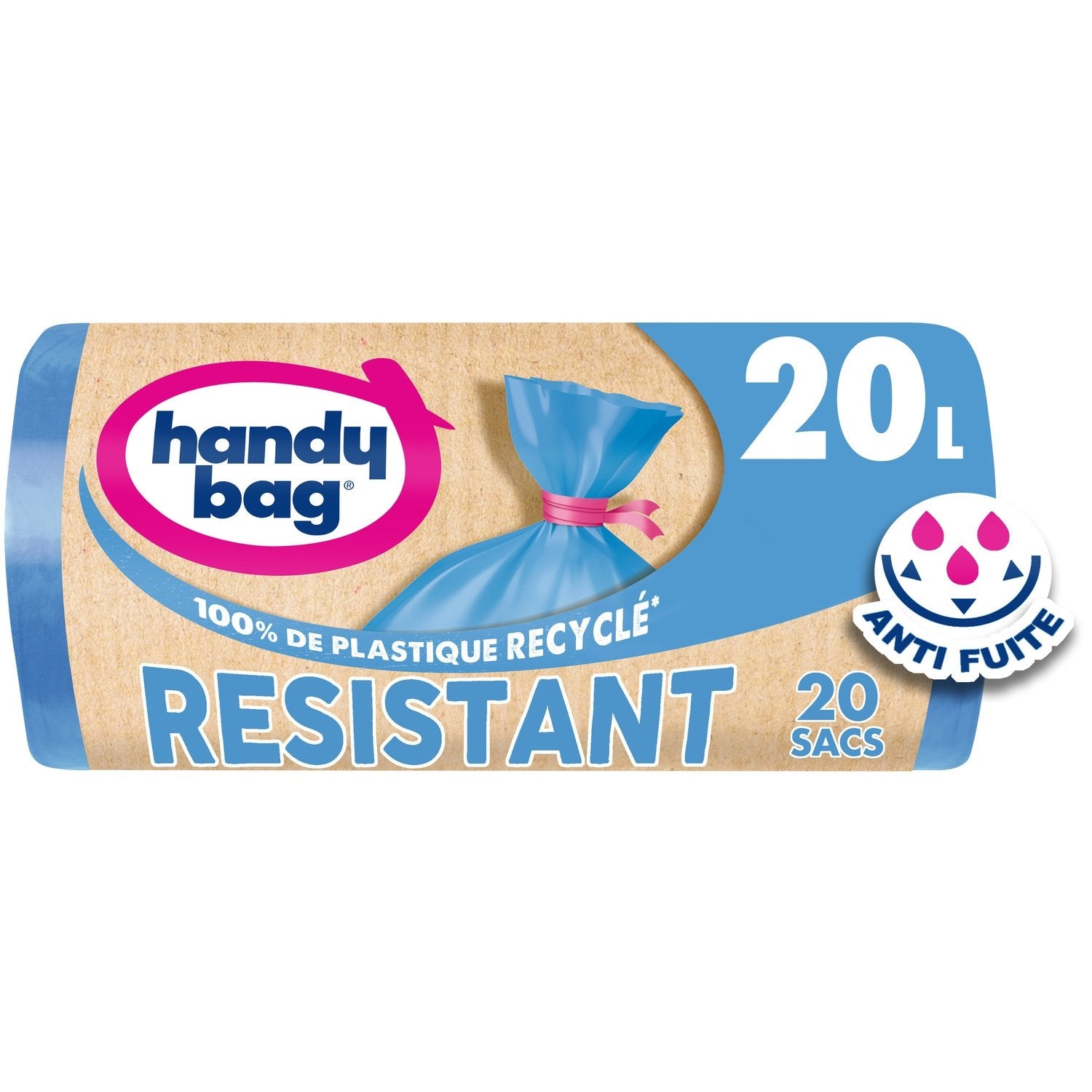 Robuste Müllsäcke, 20 l, 20 Stück, 100 % recycelter Kunststoff, praktische Tasche
