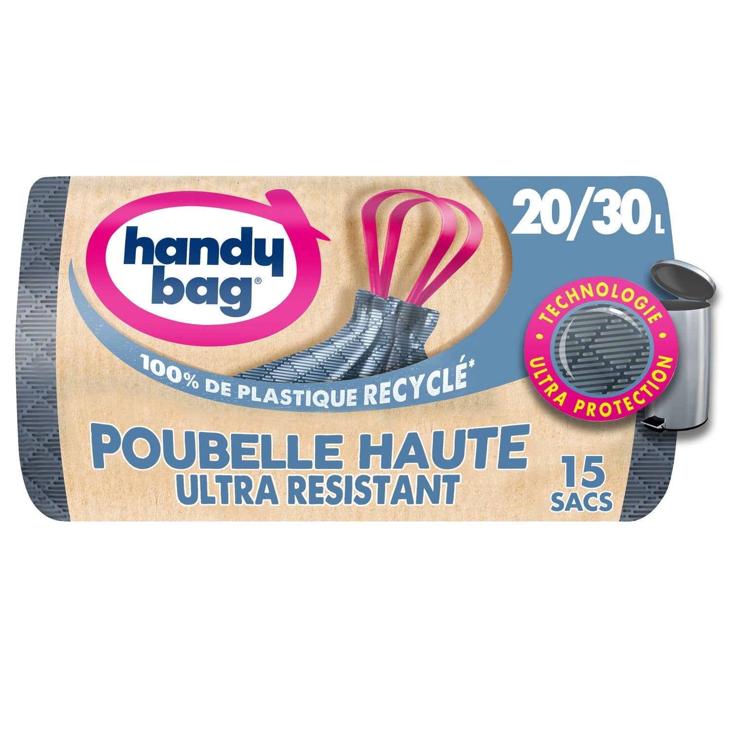 Müllbeutel mit großem Fassungsvermögen und Schiebegriffen, 20 l/30 l, 15 Stück, 100 % recycelter Kunststoff, Handy Bag
