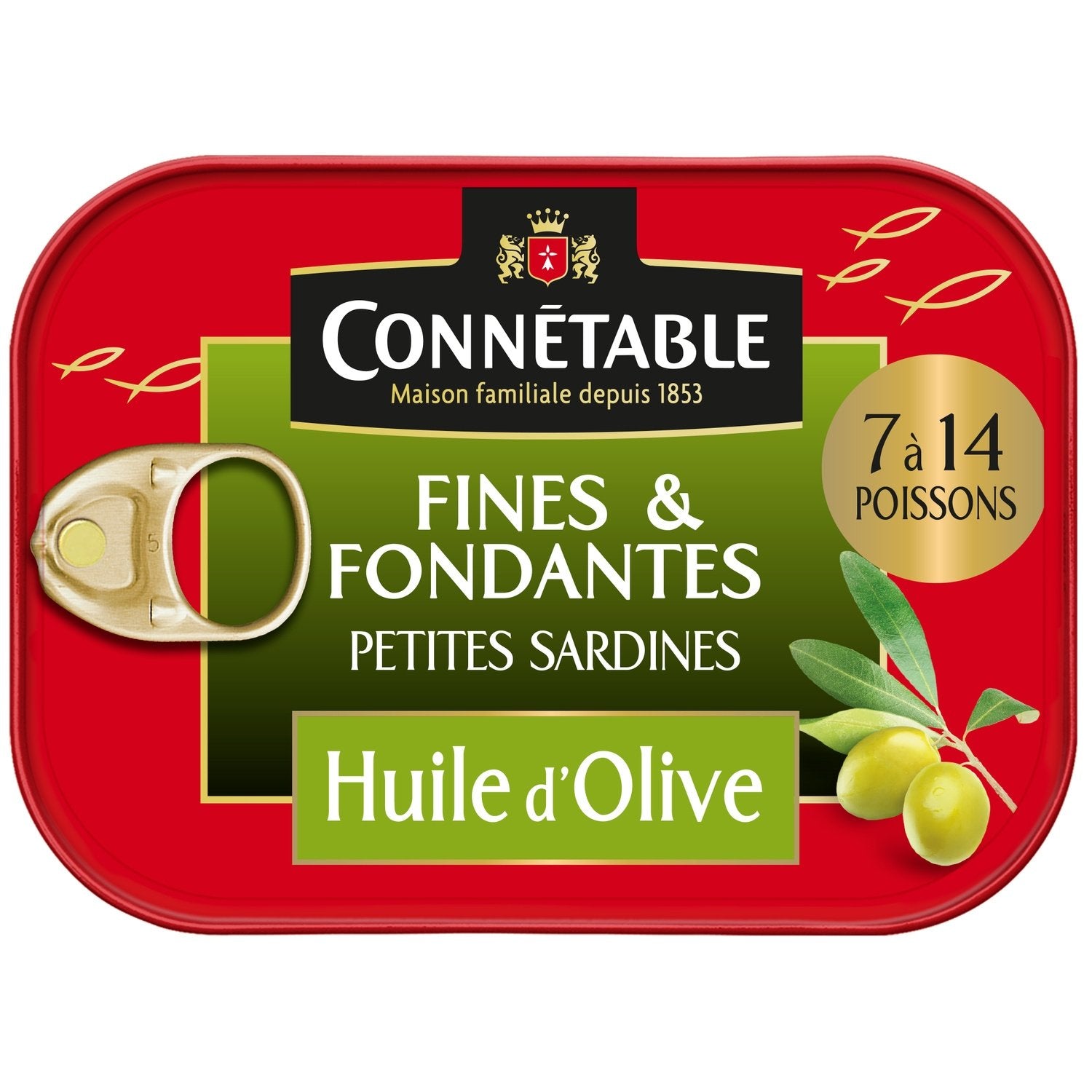 Diejenigen unter Ihnen, die eher kleinen Sardinen erliegen, werden von den Fines et Fondantes begeistert sein! Kleine Sardinen (Sprats Sprattus sprattus), gefangen im Nordostatlantik, mit sehr mildem Geschmack und kaum wahrnehmbaren Gräten, verfeinert mit einem natürlich aromatischen Olivenöl ... das verspricht Ihnen Connétable mit seinen Fines et Fondantes in nativem Olivenöl extra.