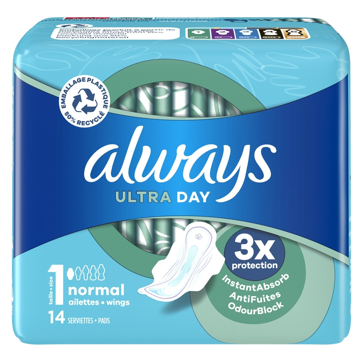 Always Ultra Jour Menstruationsbinden Regular (Größe 1) mit Flügeln, 14 Binden, super saugfähig & ultradünn, für die Periode