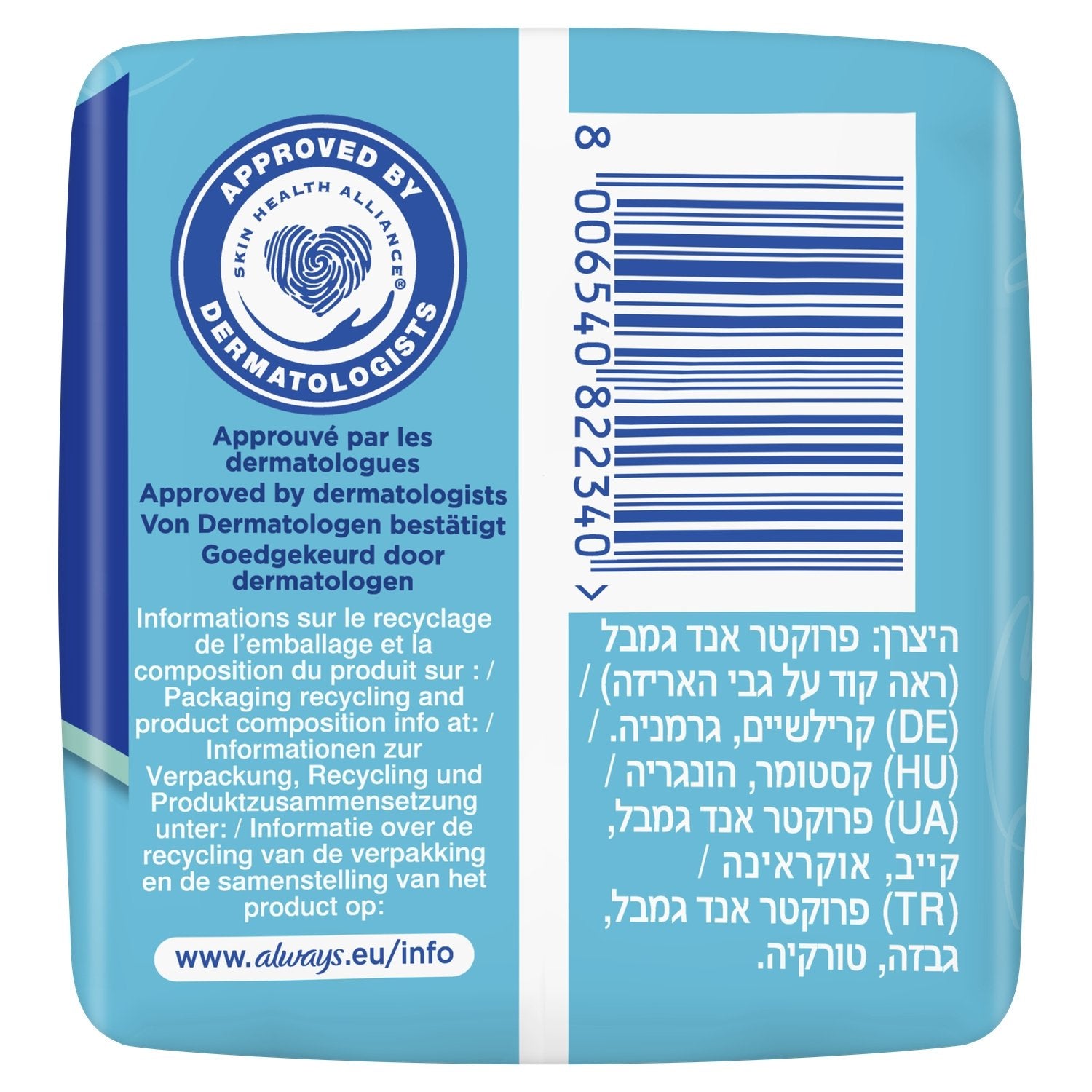 Dreifacher Schutz für ein frisches und trockenes Gefühl während der Periode. Dank InstantAbsorb absorbiert die Binde Flüssigkeit in Sekundenschnelle. Die Anti-Leak-Technologie schließt Flüssigkeit ein und hilft, Auslaufen zu verhindern. Saugfähige, weiche Oberschicht. Die OdourBlock-Technologie neutralisiert Gerüche. Die ComfortLock-Flügel passen unter jede Art von Dessous. Die Außenverpackung besteht zu 50 % aus recyceltem Kunststoff. Von Dermatologen der Skin Health Alliance zugelassen