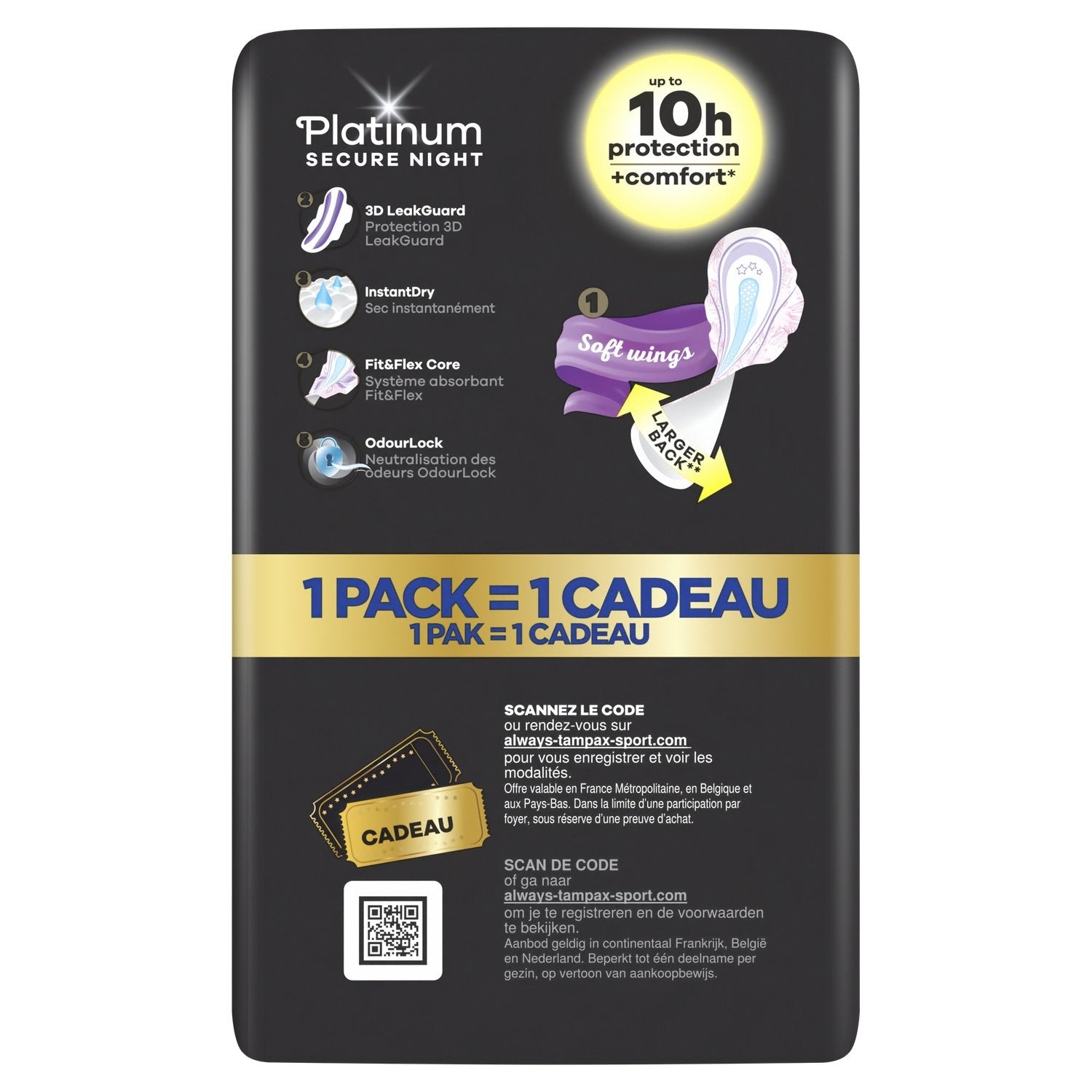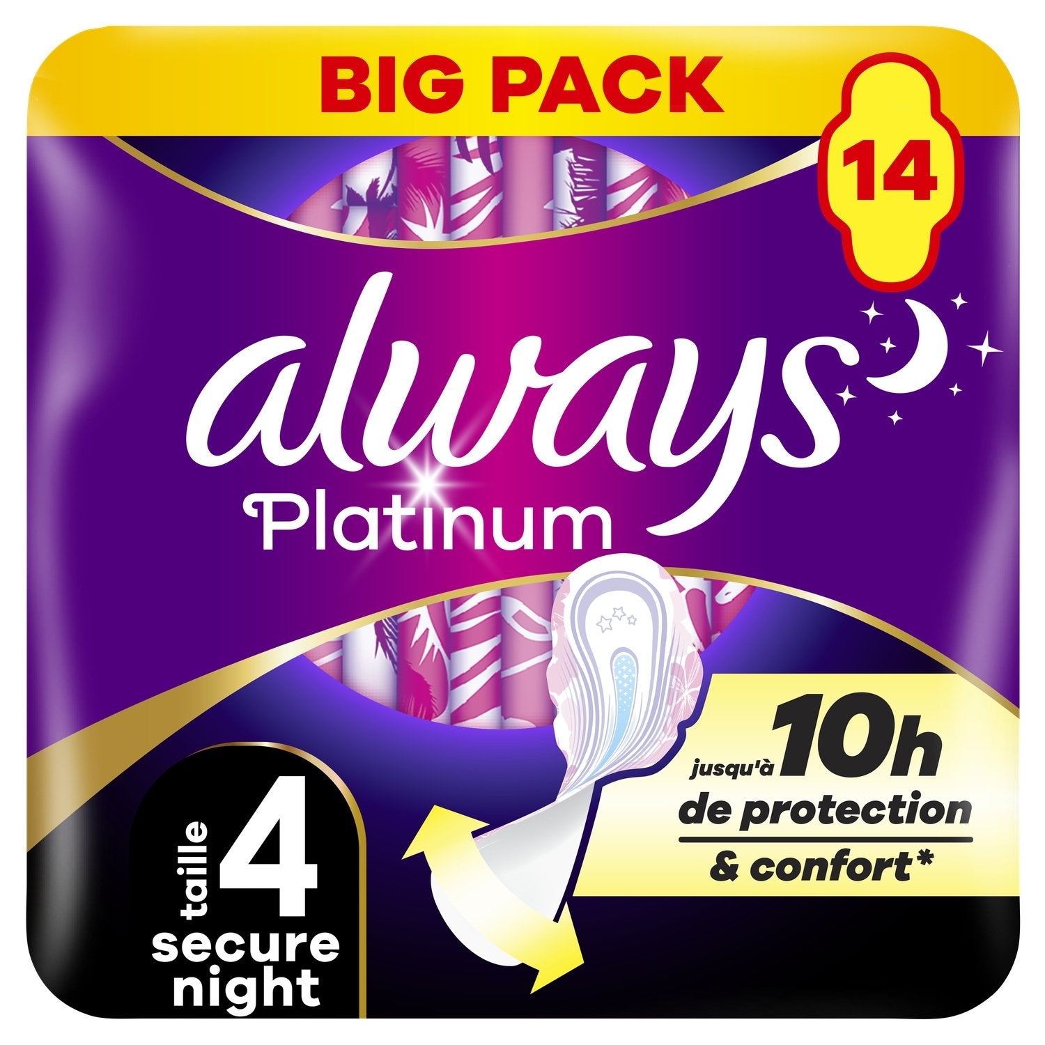 Always Platinum Secure Night Pads (Größe 4) mit Flügeln 14, ultraweicher Schutzschicht, leichter Duft