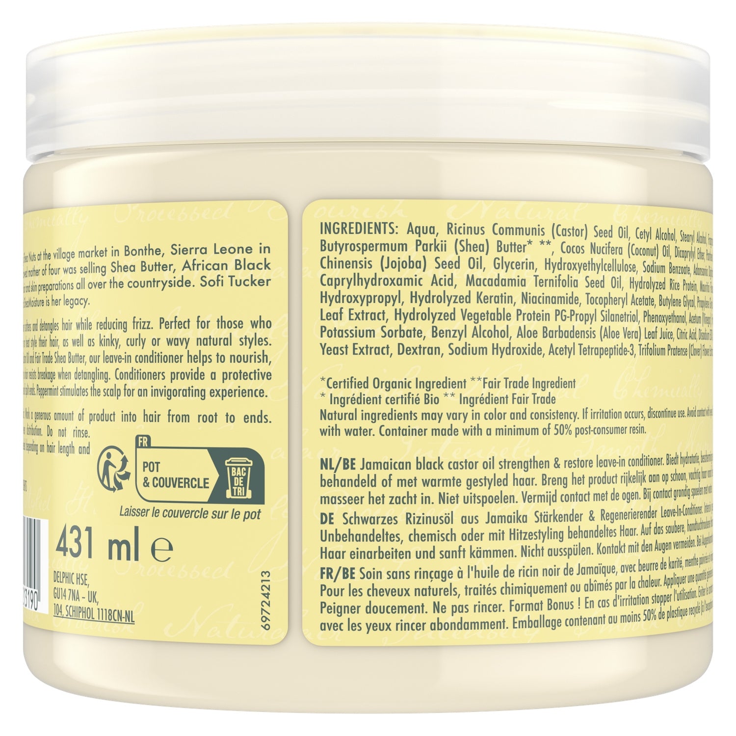 Dieser Leave-in-Conditioner ist ideal für alle, die ihr Haar regelmäßig färben, glätten oder Dauerwellen machen lassen. Er eignet sich für natürlich strukturiertes Haar. Mit jamaikanischem Rizinusöl und Fair-Trade-Sheabutter pflegt und stärkt diese Haarkur geschädigtes Haar und reduziert so das Risiko von Haarbruch und Haarausfall. Angereichert mit Pfefferminzöl stimuliert er zudem die Kopfhaut und sorgt für glänzendes und regeneriertes Haar.