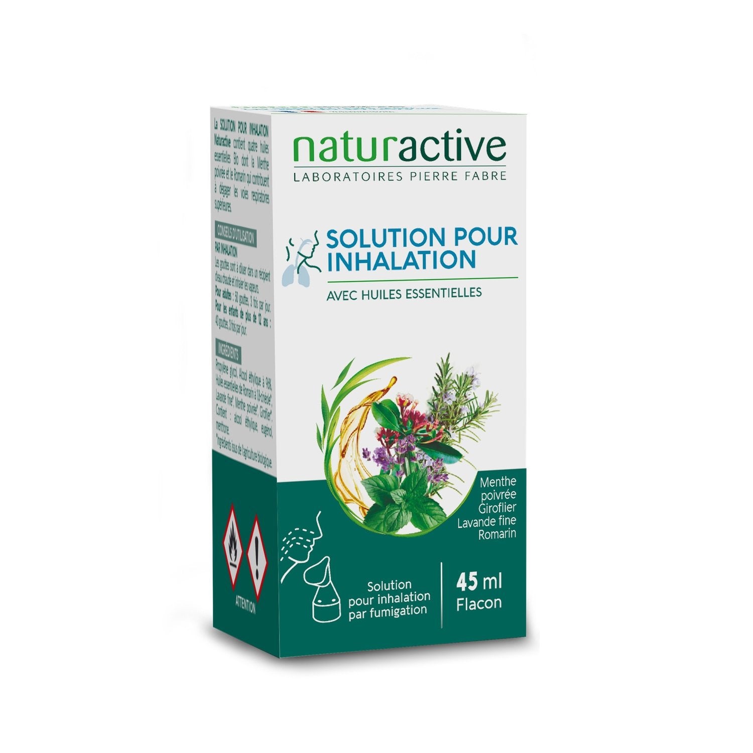 Naturactive INHALATIONSLÖSUNG enthält vier organische ätherische Öle, darunter Pfefferminze und Rosmarin, die zur Reinigung der oberen Atemwege beitragen.