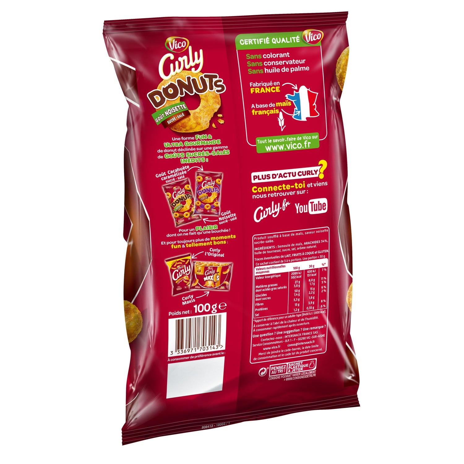 Auf Mais basierendes gepufftes Produkt mit süß-salzigem Haselnussgeschmack.
