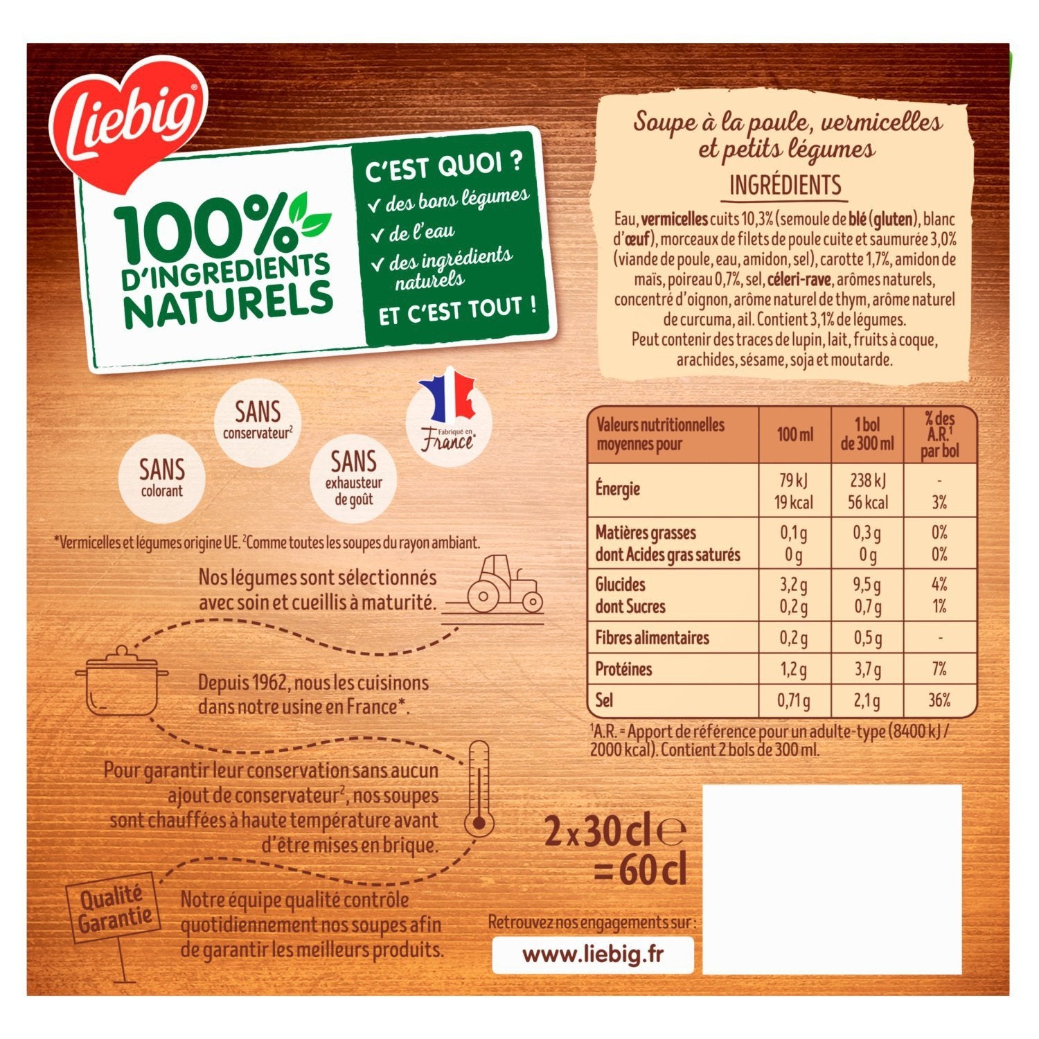 Verwöhnen Sie sich mit Liebigs regionalen Suppen. Wohltuende Rezepte, inspiriert von der traditionellen französischen Küche. Diese samtig-weichen Suppen, mit oder ohne Stückchen, werden seit 1962 in unserer Fabrik in Frankreich (Gemüse aus EU- und Nicht-EU-Ländern) mit 100 % natürlichen Zutaten liebevoll zubereitet. Unser Gemüse wird von unseren Produzenten sorgfältig ausgewählt und auf dem Höhepunkt seiner Reife geerntet. Um ihre Haltbarkeit ohne Zusatz von Konservierungsstoffen zu gewährleisten, werden unsere Suppen vor dem Verpacken in Kartons hocherhitzt. Unser Qualitätsteam kontrolliert unsere Suppen täglich, um beste Produkte zu garantieren. Diese Suppen sind in einzelnen 2x30cl-Kartons erhältlich. Wie alle Suppen im Bereich „Haltbar“ ist Liebig der Erfinder der Kartonsuppe, einer Verpackung, die die Qualität von Gemüse mehrere Monate lang ohne Zusatz von Konservierungsstoffen bewahrt. Unsere Teams sind bestrebt, Ihnen Qualitätsprodukte aus sorgfältig angebautem und auf dem Höhepunkt seiner Reife geerntetem Gemüse anzubieten. Weitere Informationen zu unserer Geschichte und unseren Rezepten finden Sie unter www.liebig.fr
