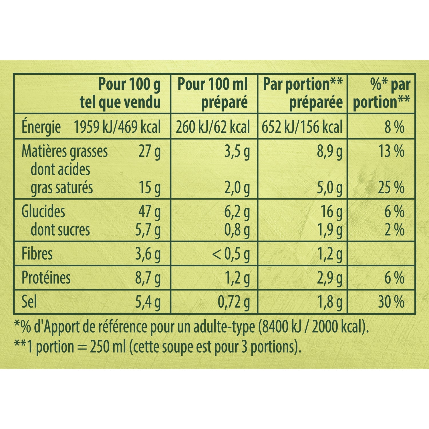 Zutaten: WEIZENmehl, Palmfett, Kartoffelstärke, weißer Spargel³: 6,4%, Salz, Mais³, Glukosesirup, Zucker, hydrolysiertes Pflanzeneiweiß, Kaliumchlorid, MILCHEIWEISS, Aromen (inkl. MILCH), grüner Spargel³: 0,6%, Spinat³, Zitronensaft (Zitronensaft, Maltodextrin). Kann enthalten: Hafer, SELLERIE, SENF, EI, Gerste, Roggen, SOJA. ³Gemüse aus…