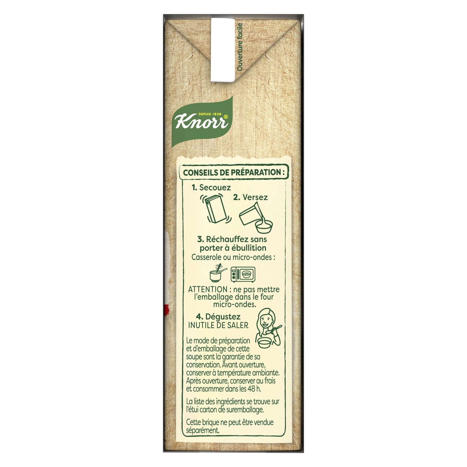Entdecken Sie die französische Gemüsesuppe von Knorr®, hergestellt in Frankreich mit 100 % französischem Gemüse! Das Gemüse wird nachhaltig und verantwortungsvoll von unseren Partnerbauern angebaut.,Diese Knorr®-Suppe besteht aus 100 % natürlichen Zutaten und Gemüse aus nachhaltiger Landwirtschaft.,Diese vegetarische Suppe mit Nutri-Score B enthält keine Geschmacksverstärker, Farbstoffe oder Konservierungsstoffe (wie alle flüssigen Suppen im Regal für haltbare Produkte).,Unsere Suppenkartons, größtenteils recycelbar und mit den Labels FSC® und ASI® zertifiziert, unterstützen die nachhaltige Beschaffung von Karton und Aluminium.,Mit diesem 2 × 30 cl-Format können Sie 2 Schüsseln Suppe servieren.,Ein wohltuendes Suppenrezept, das schnell und einfach zubereitet ist: schütteln, einschenken, erhitzen (ohne zu kochen) ... und genießen!