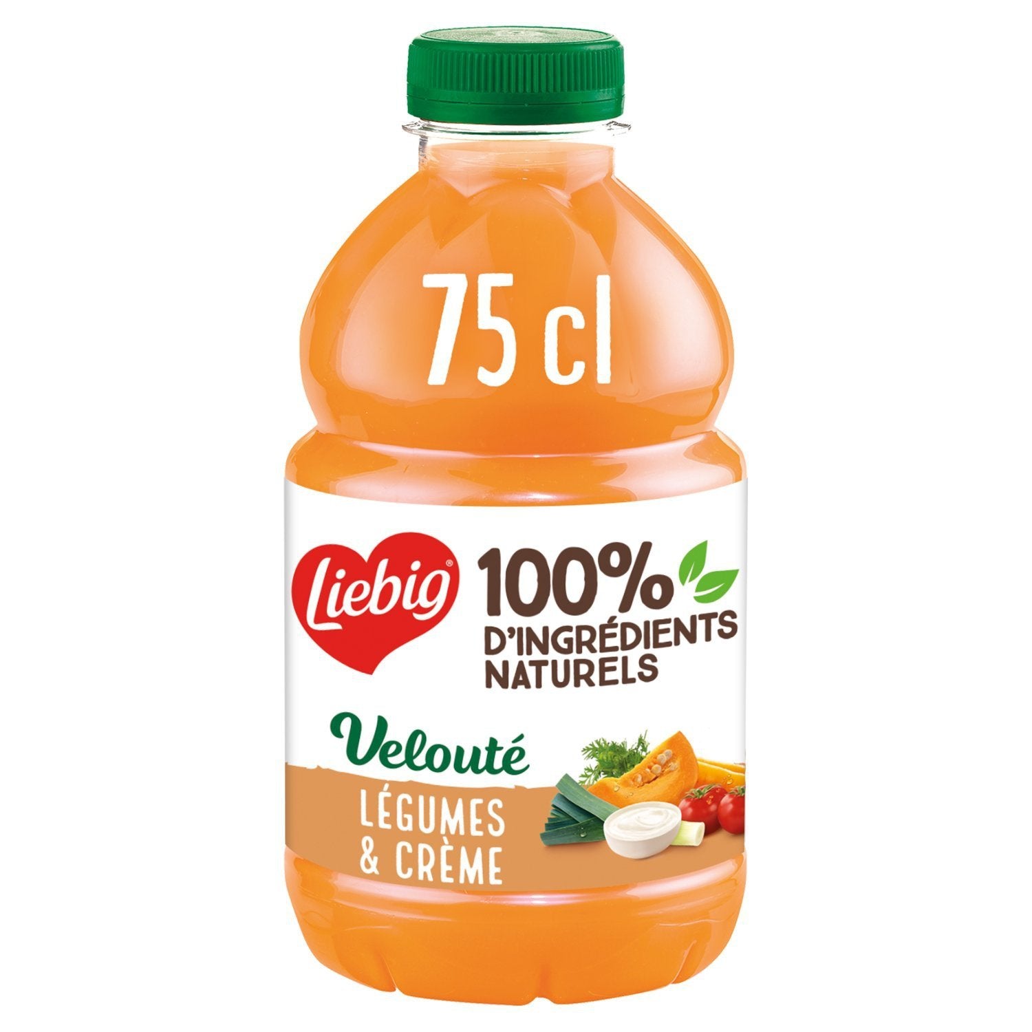 Gönnen Sie sich Liebigs 100 % französische Gemüsesuppen in Flaschen. Diese Suppen bestehen aus 100 % natürlichen Zutaten, sind frei von Konservierungsstoffen² und reich an Ballaststoffen. Ob glatt oder püriert – diese Suppen werden Sie überraschen. Die Suppen in Familiengröße sind in 75-cl-Flaschen erhältlich. ²Wie alle Suppen im Bereich „Haltbar“ ist Liebig der Erfinder der Blocksuppe, verpackt…