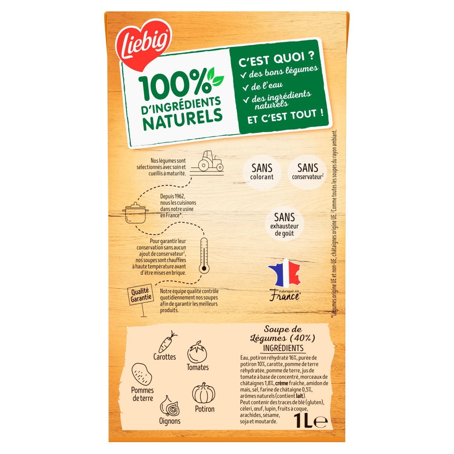 Gönnen Sie sich Liebigs Gourmet-Suppen. Köstliche Rezepte, die Ihren Gaumen verwöhnen. Diese Suppen mit ihrer samtigen Textur, mit oder ohne Stückchen, werden seit 1962 in unserer Fabrik in Frankreich (EU- und Nicht-EU-Gemüse) mit viel Liebe zubereitet. Unser Gemüse wird von unseren Produzenten sorgfältig ausgewählt und auf dem Höhepunkt seiner Reife geerntet. Um die Haltbarkeit ohne Zusatz von Konservierungsstoffen zu gewährleisten,...