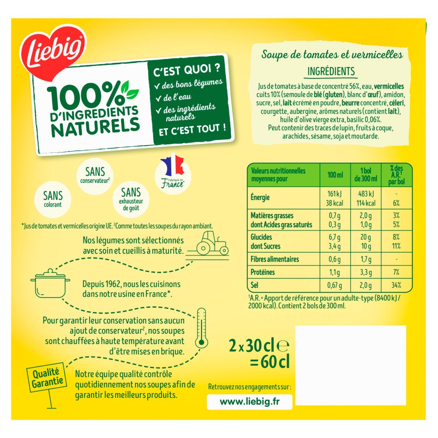 Gönnen Sie sich Liebigs Pastasuppe. Wohltuende Suppen für Jung und Alt. Diese samtig-weiche Suppe wird seit 1962 in unserer Fabrik in Frankreich (EU- und Nicht-EU-Gemüse) mit 100 % natürlichen Zutaten liebevoll zubereitet. Unser Gemüse wird von unseren Produzenten sorgfältig ausgewählt und auf dem Höhepunkt seiner Blüte geerntet. Um seine Haltbarkeit ohne Zusatz von...