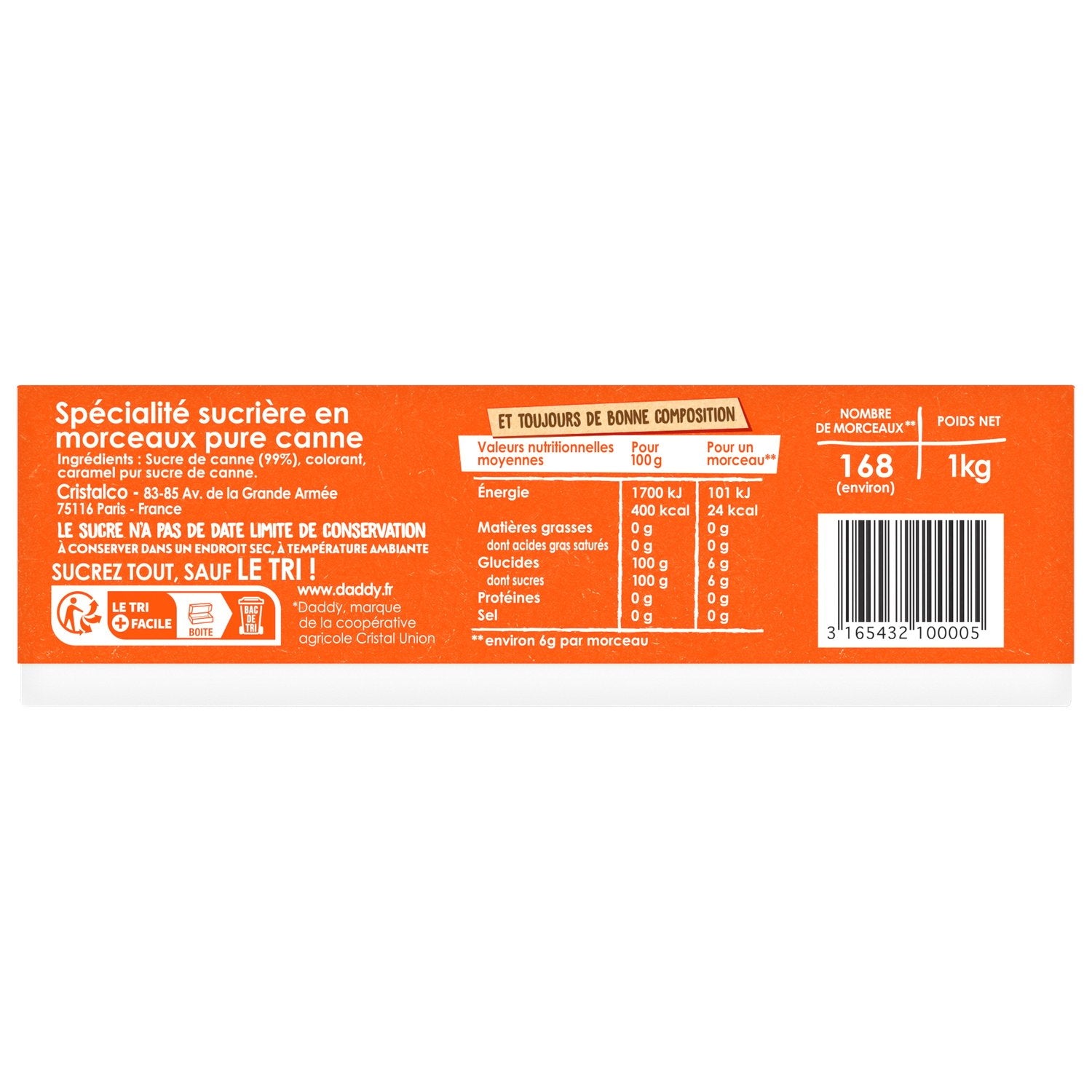 DetailsReiner Rohrzucker Stückgewicht: grs EAN-Barcode: 3165432100005 Marke: DADDY