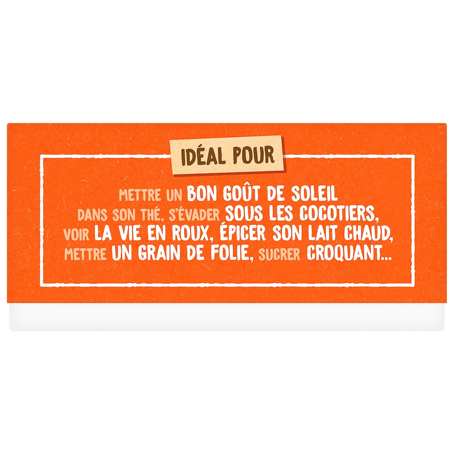 Ideal, um Ihrem Tee einen guten Hauch von Sonnenschein zu verleihen, unter die Kokospalmen zu entfliehen, das Leben in Rot zu sehen, Ihre heiße Milch aufzupeppen, einen Hauch von Wahnsinn hinzuzufügen, sie knusprig zu süßen …