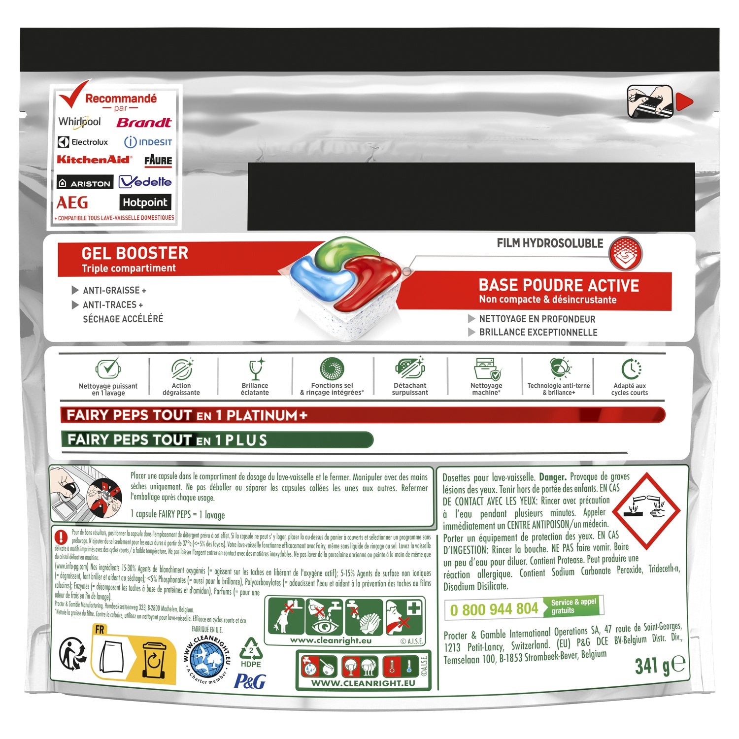 Fairy-Tabs entfernen hartnäckige Speisereste und sorgen dafür, dass Ihr Geschirr wie neu aussieht und sich auch so anfühlt.,Wirksam auch bei Kurzspülgängen.,Wählen Sie einen Kurzspülgang anstelle eines normalen Spülgangs, um Zeit, Energie und Wasser zu sparen.,Das integrierte Vorspülsystem erledigt die Arbeit für Sie und spart Ihnen Wasser.,Mit Platinum Plus-Reinigungswirkung.,Von Geschirrspülerherstellern weltweit empfohlen.,Klarspülerwirkung, einschließlich Glas- und Silberschutz.,Wir produzieren zu 100 % mit zugekauftem Strom aus erneuerbaren Energien.