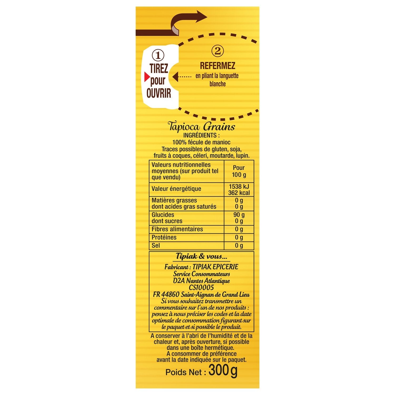 Zutaten: 100 % Maniokstärke. Mögliche Spuren von GLUTEN, SOJA, NÜSSEN, SELLERIE, SENF, Lupine.