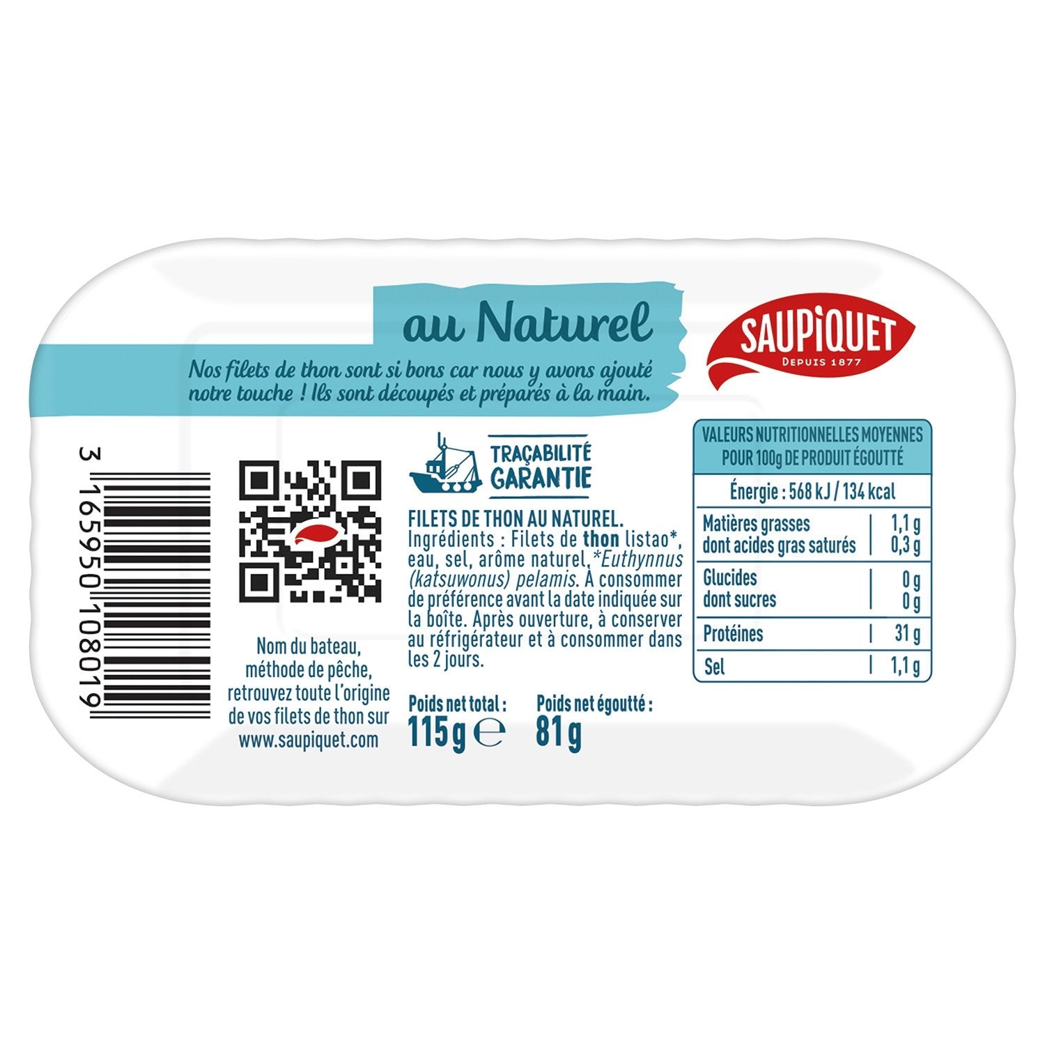 DetailsThunfischfilets in Salzlake Stückgewicht: grs EAN-Barcode: 3165950108019 Marke: SAUPIQUET