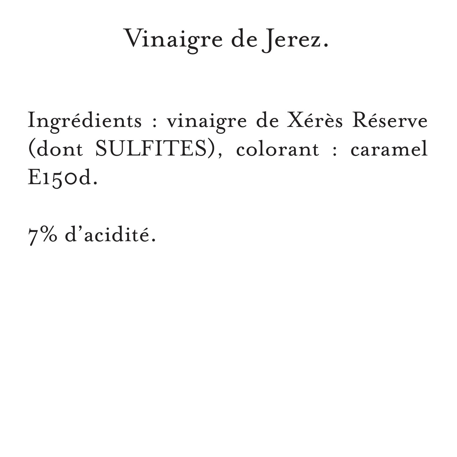 Zutaten: Reserve-Sherry-Essig (einschließlich SULFITE), Farbstoff: Ammonium-SULFIT-Karamell.