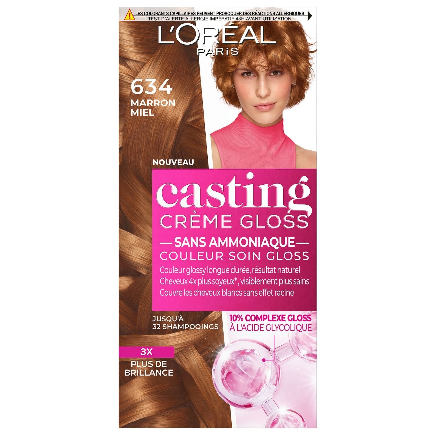 Casting Crème Gloss von L'Oréal Paris ist eine ammoniakfreie Gloss Treatment Color. Eine semipermanente Farbe ohne Ansatzeffekt, mit 10% Glykolsäure-Glanzkomplex* für ein natürliches Ergebnis und ultraglänzende, langanhaltende Farbe. *In der Abschlussbehandlung 3x glänzender* und 4x seidiger* Haare bis zu 32 Haarwäschen* *Instrumenteller Test