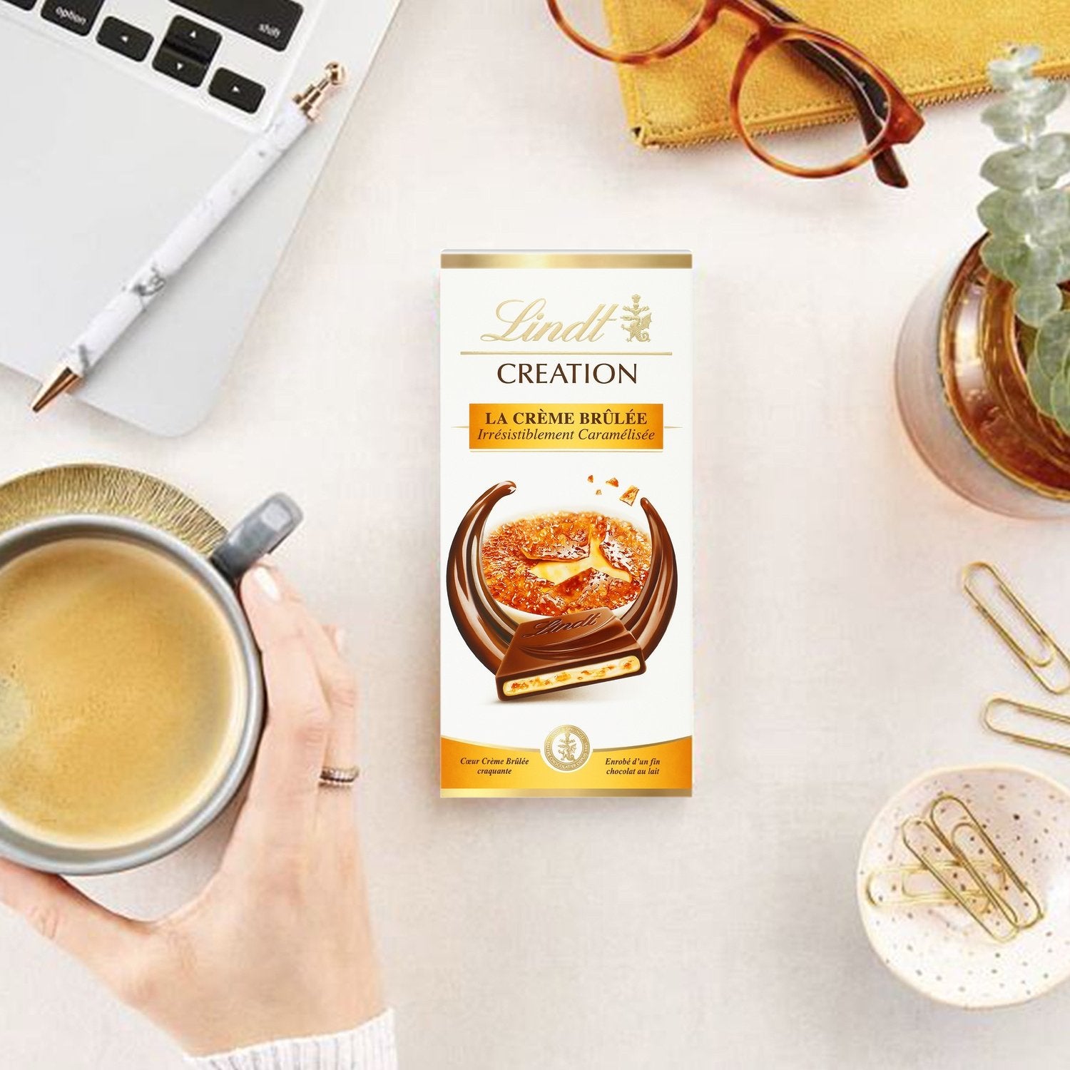 Für die Lindt Création Tafeln haben die Maîtres Chocolatiers ein wahres Meisterwerk geschaffen. Diese köstliche Kreation besteht aus einer zarten Crème Brûlée, umhüllt von feiner Lindt Milchschokolade. Dieses raffinierte und einzigartige Rezept verwendet erlesene Zutaten und nachhaltig angebaute Kakaobohnen, um eine köstlich gefüllte Schokolade zu kreieren, die zu jeder Tageszeit genossen werden kann.