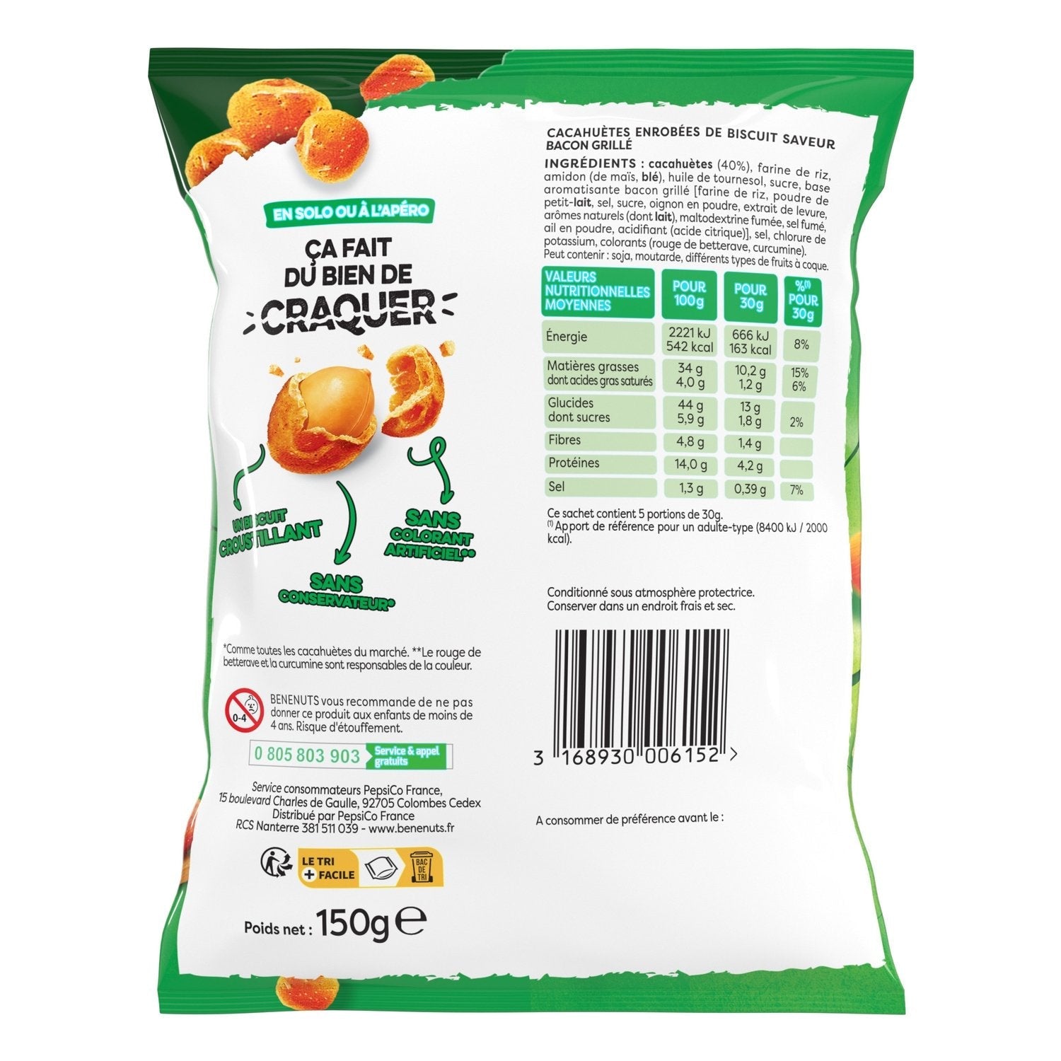 BÉNENUTS TWINUTS GOÛT BACON, UN SNACK GOURMAND : Une cacahuète croquante avec un goût salé original. TOUTE L'EXPERTISE ET LA QUALITÉ BÉNENUTS : Twinuts, c'est une cacahuète croquante, un parfum gourmand, et une double couche de biscuit croustillant. UNE MARQUE RESPONSABLE : Les cacahuètes Benenuts Twinuts sont sans conservateurs et sans colorants artificiels. BÉNENUTS TWINUTS, L'INCONTOURNABLE DE L'APÉRO : des cacahuètes salées délicieuses à grignoter, un gâteau apéritif idéal pour satisfaire toute la famille !