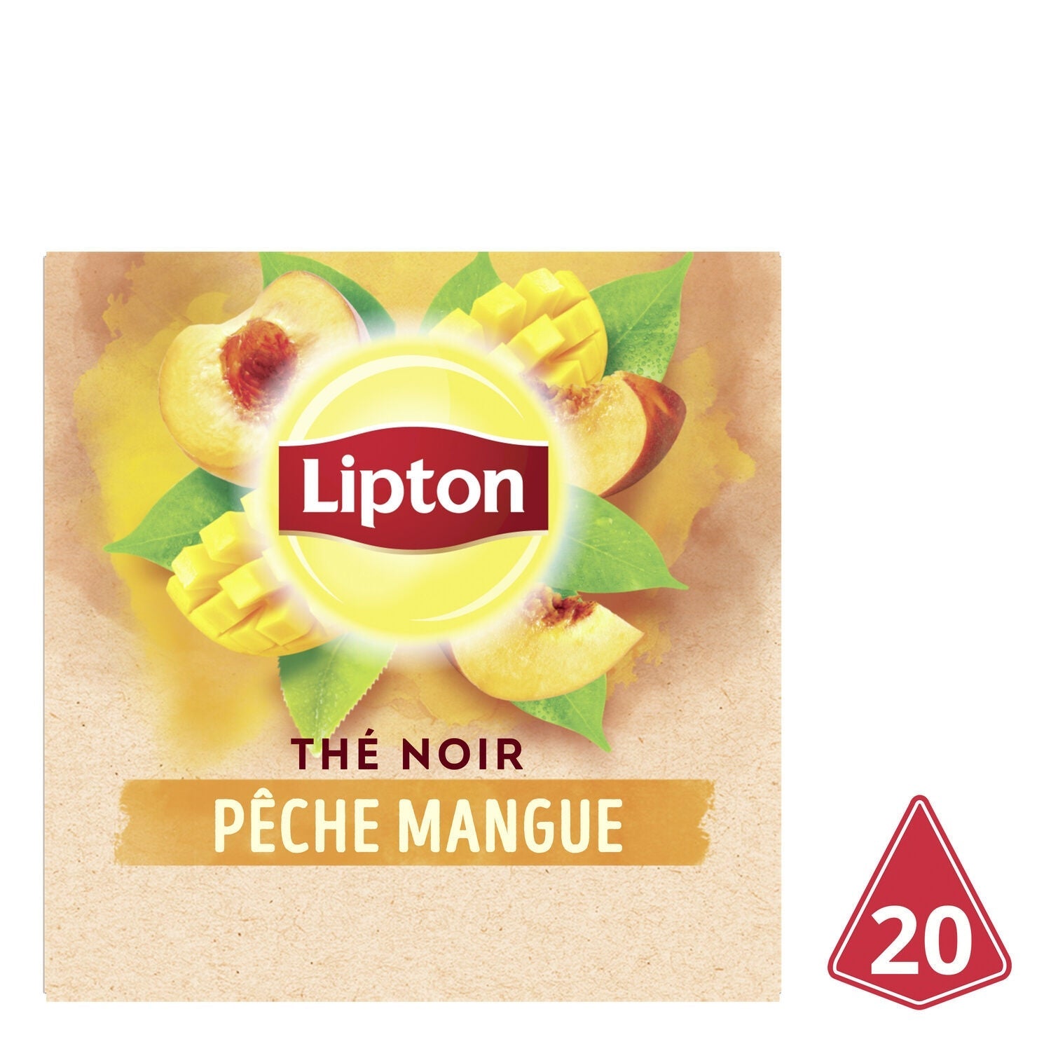 Les 20 sachets Pyramid® de Thé Noir Agrumes Lipton® vous accompagnent pour une expérience fruitée, intense et savoureuse.,Tout le savoir-faire de Sir Thomas Lipton dans 20 sachets de thé à la pêche et à la mangue au goût parfaitement équilibré pour frissonner de plaisir.,Dégustez le Thé Noir Pêche Mangue Lipton® et retrouvez un délicieux cocktail alliant la douceur de la mangue, le velouté de la pêche et des feuilles de thé noir.,Pour une dégustation parfaite, versez 200 ml d'eau à 90 °C, sans lait ni sucre et laissez infuser vos thés noirs pendant 2 à 3 mn selon l'intensité désirée.,Le sachet de thé Pyramid® mis au point par Lipton® laisse tous les ingrédients exprimer généreusement leurs arômes naturels pour vous faire profiter de tous les plaisirs du thé.,Les feuilles du Thé noir Lipton® sont issues de plantations vérifiées Rainforest Alliance.