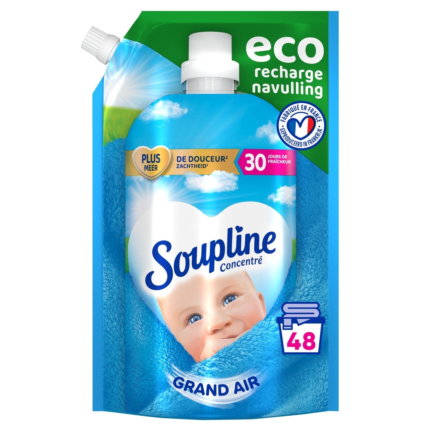 Discover the new Soupline Grand Air eco-refill, with 30 Days of Freshness guaranteed! With its new revolutionary 3D fragrance, enjoy a unique combination of 3 technologies for a unique sensory experience. Give your laundry an intense fragrance while enjoying the incomparable softness of Soupline. A formula that works even in cold washes* with 92% ingredients of natural origin in more responsible packaging with 50% less plastic**. *in washing water at 25°C ** vs. the 1L bottle