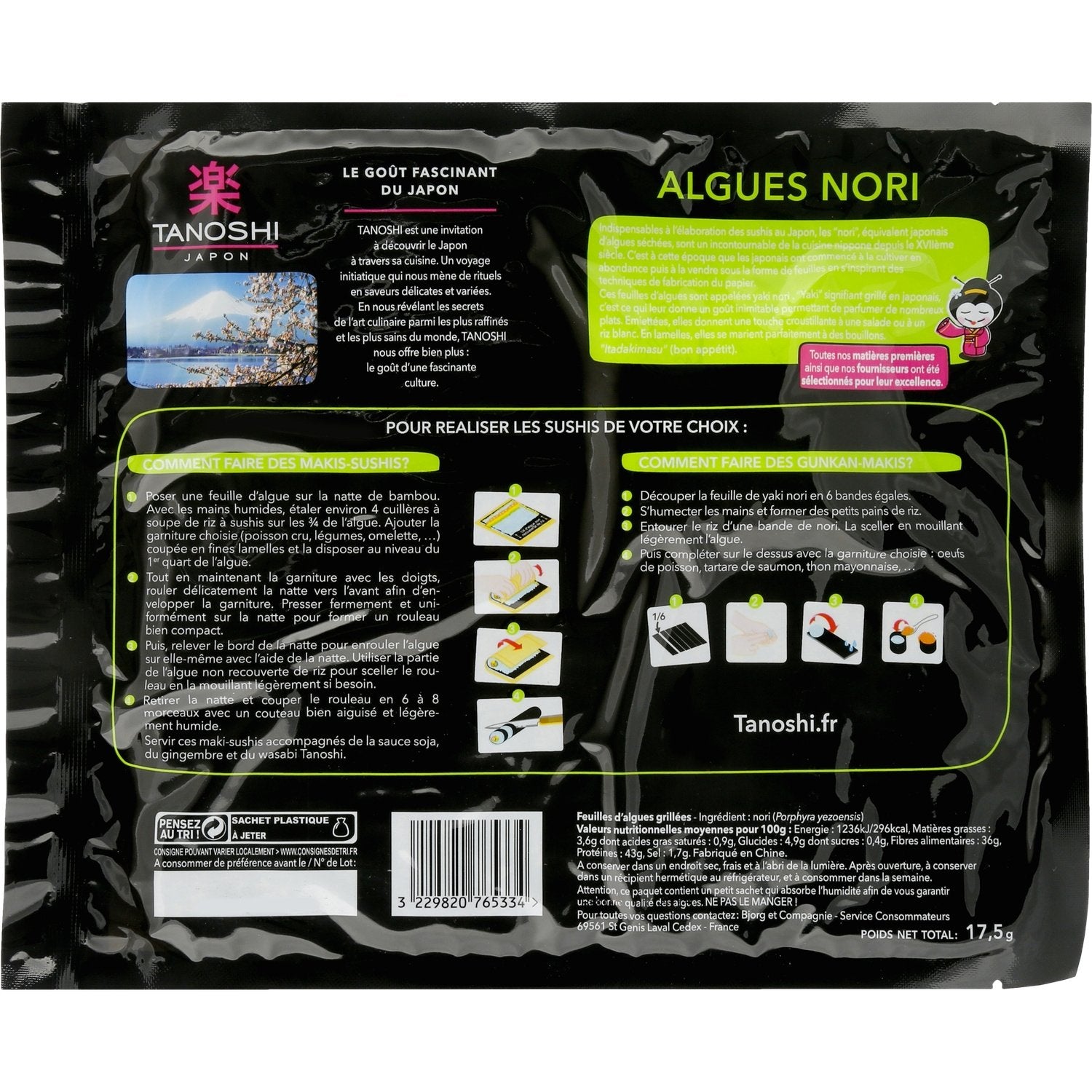 NORI seaweed is a dried and roasted seaweed that is essential in Japanese cuisine. It is used to make sushi or to flavor many dishes (salads, white rice, etc.)