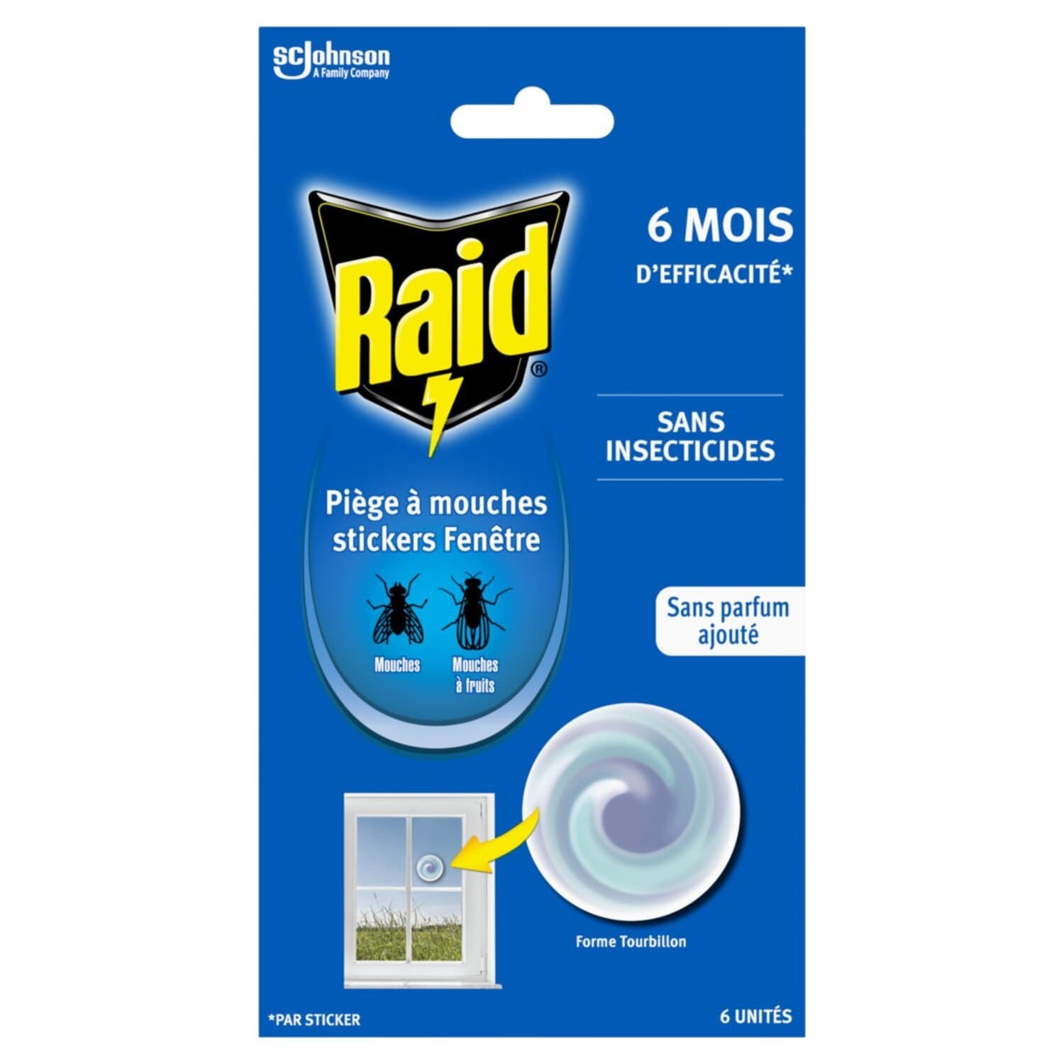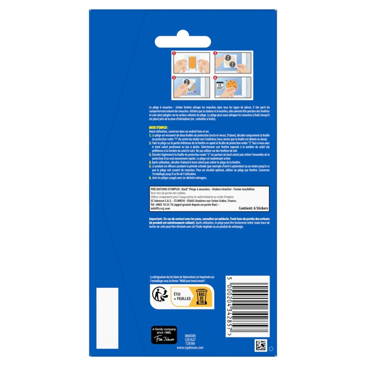 The Raid® fly trap - window stickers effectively catches flies in all types of rooms and works for up to 6 months. Attracted by heat and light, flies like to be near windows and are thus trapped on the trap's sticky surface. The trap can also catch fruit flies when placed near the infestation area (e.g., fruit baskets). Thanks to their adhesive and decorative shape, Raid® fly traps - window stickers can be used in the kitchen, where flies are usually concentrated, as well as in all other rooms of your home. They are also fragrance-free and can be easily removed. See the back of the package for detailed precautions and instructions for use.