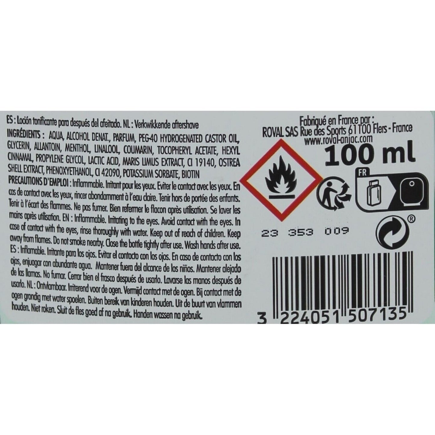 Aqua, alcohol denat., perfume, peg-40 hydrogenated castor oil, Allantoin, menthol, linalool, coumarin, tocopheryl acetate, hexyl cinnamal, propylene glycol, lactic acid, maris limus extract, Cl19140, ostrea shell extract, phenoxyethanol, Cl42090, potassium sorbate, biotin.