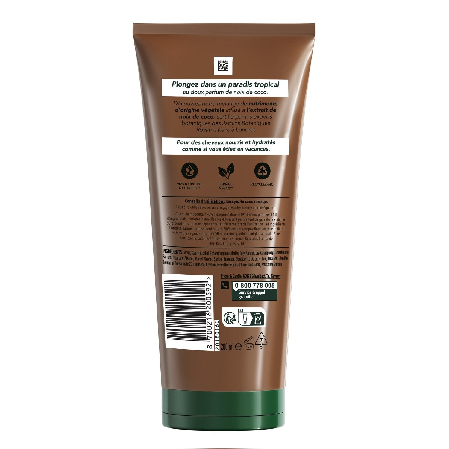 Dive into a tropical paradise with one of our most alluring conditioning products. Herbal Essences Coconut Hydration Conditioner helps nourish very dry hair and brings a feeling of balance, while offering a sensory experience, thanks to its sweet coconut scent. Our blend of plant-derived nutrients is infused with coconut extract, for a nourishing, vegan solution for hair lacking moisture. Our rich, cream-based formula can be used in two ways: you can apply it as a conditioner and rinse it out, or leave it in to prolong the uplifting feeling on your scalp. With this naturally derived blend, enjoy the benefits of botanicals in your bathroom. Restore your hair's natural beauty and awaken your senses through a complete routine, using products from our Coconut Hydration range. *refers to the ingredients in the formula