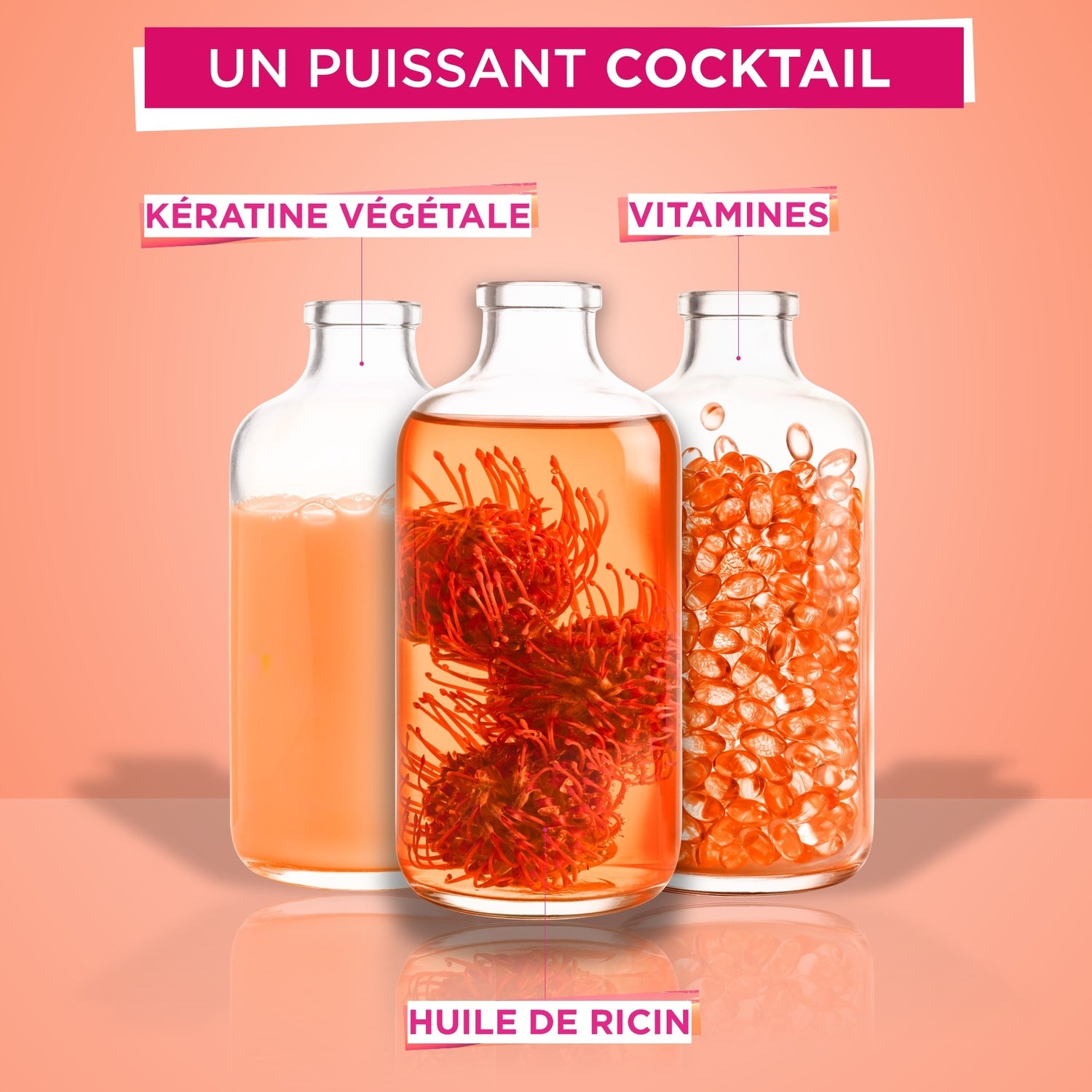 Detangling Treatment for Damaged, Brittle or Long Hair, Enriched with Castor Oil, Vitamins and Vegetable Keratin to detangle and protect your lengths from breakage • 100% recycled* and recyclable plastic bottle • Made in France *excluding dyes and cap. Instantly detangles your hair and protects the lengths from breakage for ever longer hair!