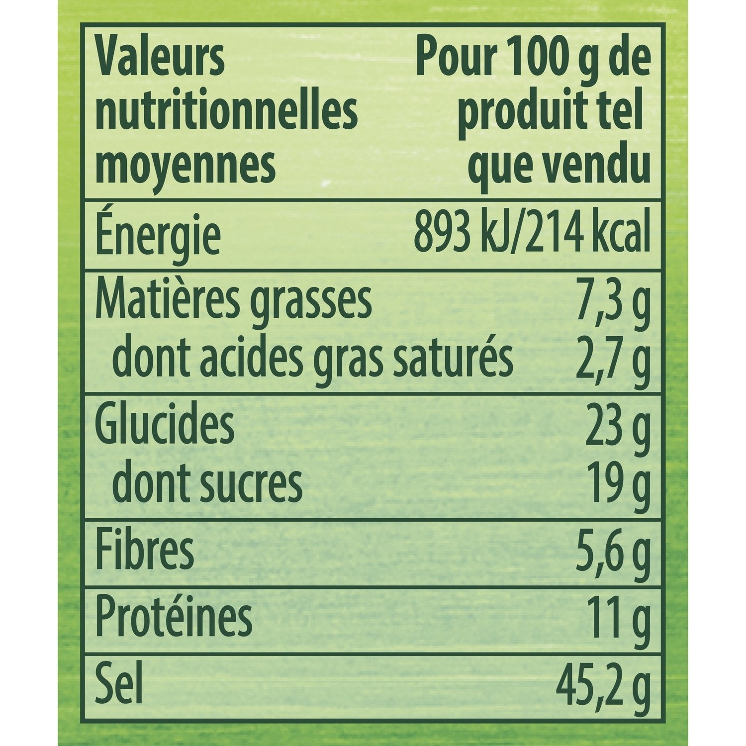The information presented (ingredients, nutritional values, usage instructions, etc.) is provided for informational purposes only and may vary depending on supplies. We invite you to systematically check the information on the packaging before consumption. Non-contractual photo - the appearance, packaging or certain details of the product may differ from the illustration. The design of the packaging is subject to change .