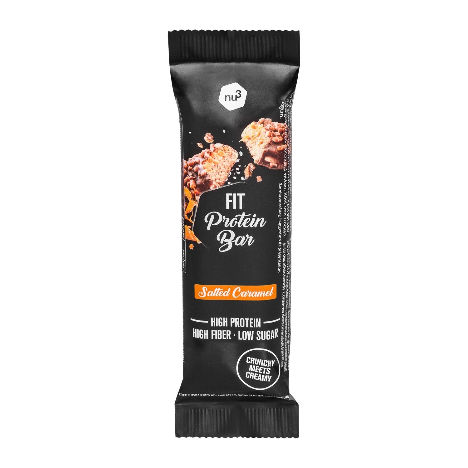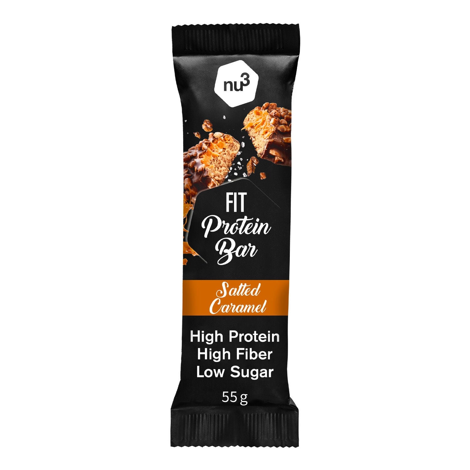 Are you really craving a sweet snack, but would like to give up sugar and calories? We have just the thing for you: the nu3 Fit Protein Bar Salted Caramel flavor! 90% less sugar and nine times more protein than classic chocolate bars. Sweetness and crunchiness guaranteed!