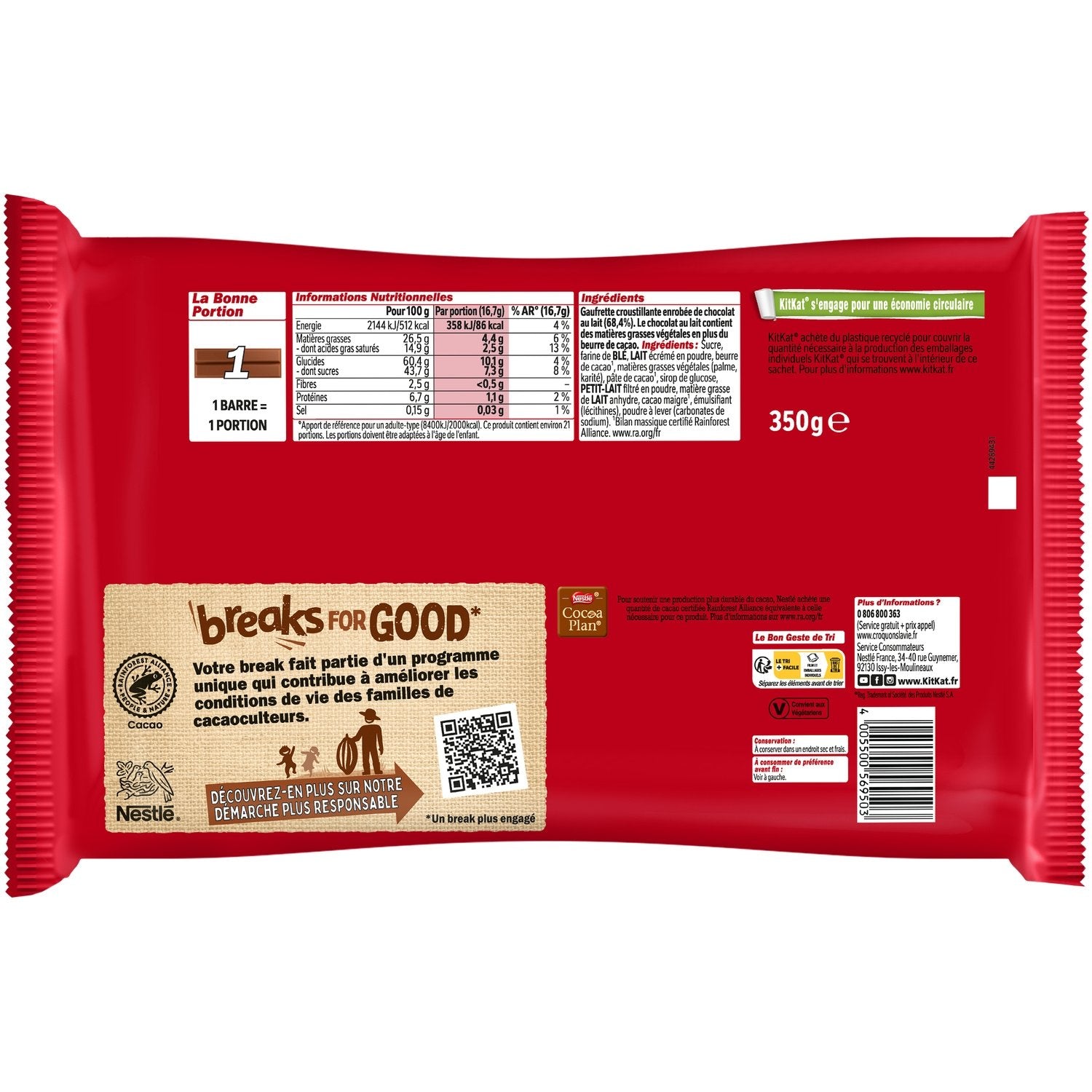 The KITKAT Mini chocolate bar is the ideal bar for anyone who loves a good break*! A crispy wafer with a light, golden texture and delicious milk chocolate. KITKAT Mini is the original KITKAT recipe in a mini format. Unwrap your KITKAT Mini, separate the two bars, break one in half, and enjoy your break*! The reference portion is one KITKAT Mini. KITKAT is the first international brand to achieve the goal of purchasing 100% sustainably produced cocoa, as part of the NESTLE Cocoa Plan. HAVE A BREAK, HAVE A KITKAT**. *A break. **A break, a KITKAT.
