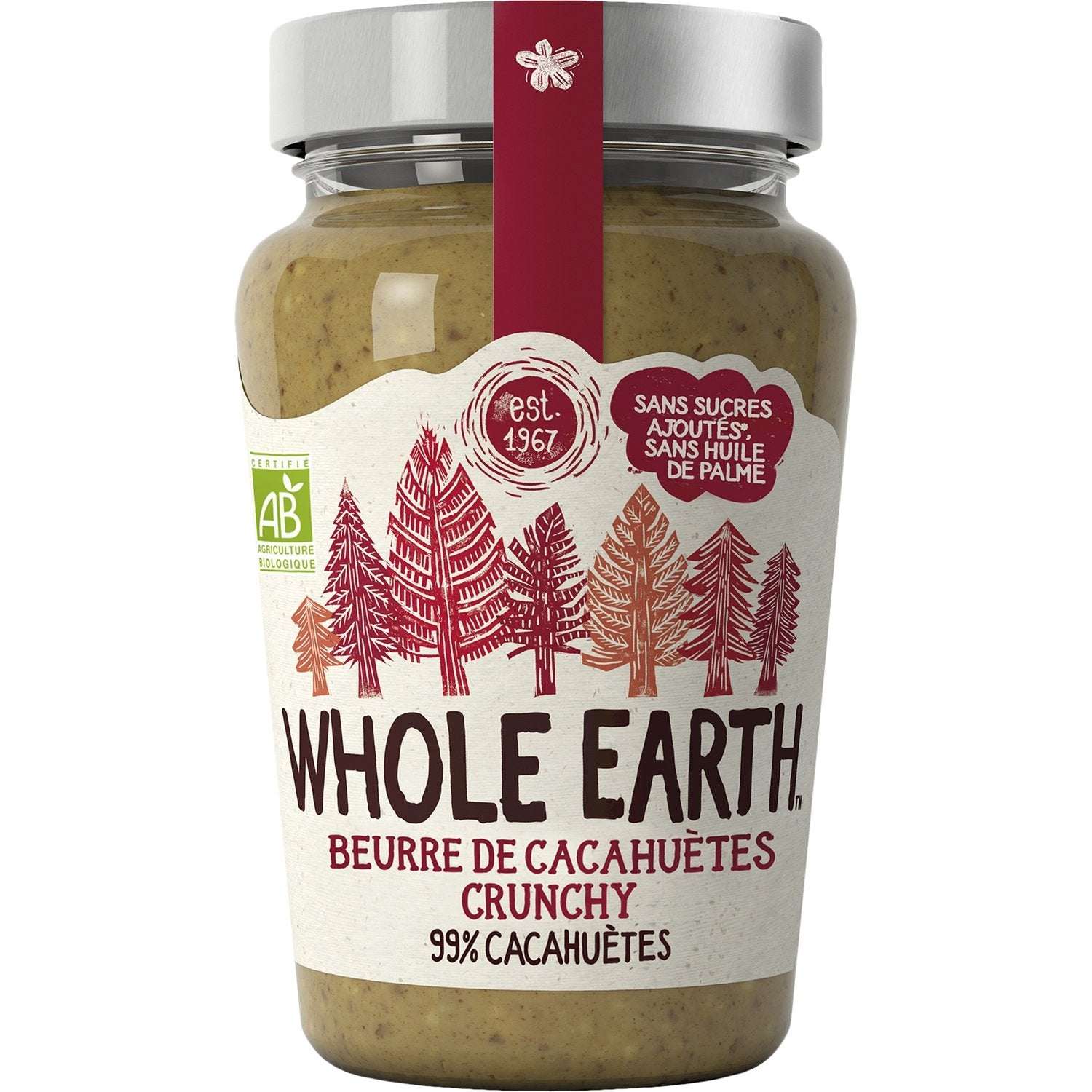 This peanut butter with real crunchy peanut pieces is organic and palm oil-free. It has no added sugar, is a source of protein, and is high in fiber.