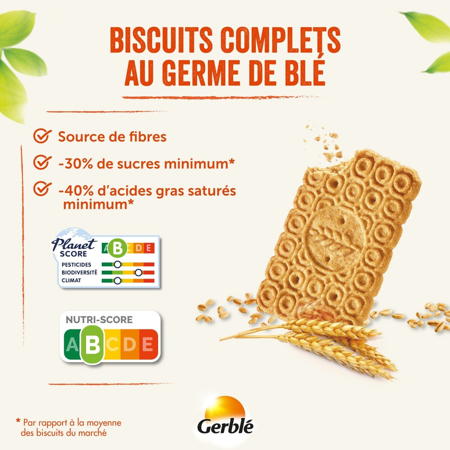 Discover the authentic taste of whole grains and wheat germ in a crispy biscuit, rich in fiber and vitamins, and low in sugar, salt, and saturated fat. This whole wheat germ biscuit is palm oil-free and made with 100% French wheat flour.