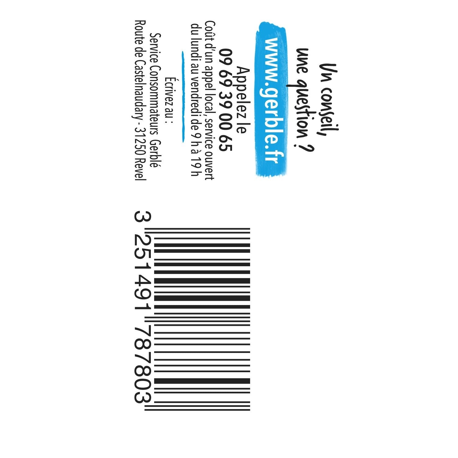 Company name: Gerblé (special number 09 69 39 00 65)