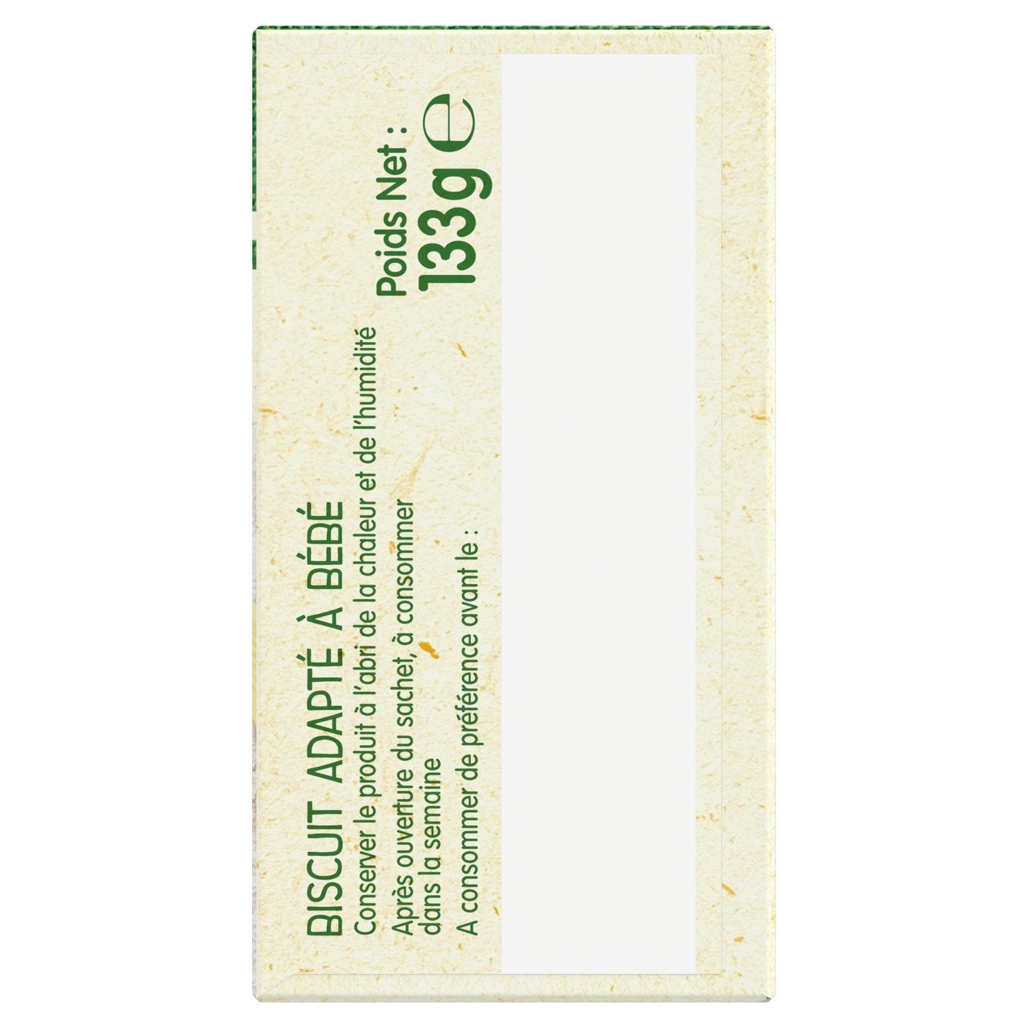 Experts in food diversification for over 100 years, Blédina is here to help you with all your baby's meals. Our mission? To awaken their curiosity for real food, thanks to over 250 recipes designed by nutritionists and perfectly adapted to their needs. From 12 months, BLEDINA biscuits specially designed for babies for a delicious and suitable breakfast or snack. Crispy texture that melts in the mouth. Ideal shape for their little hands. Practical format: 8 bags of 2 biscuits to take them everywhere. Is baby ready? You can give my first petit beurre to your baby if they: can sit up unaided, eat dishes with small pieces, eat a crust of bread and already have two teeth. Caution: Your baby should always be sitting upright and under constant adult supervision to enjoy this biscuit.