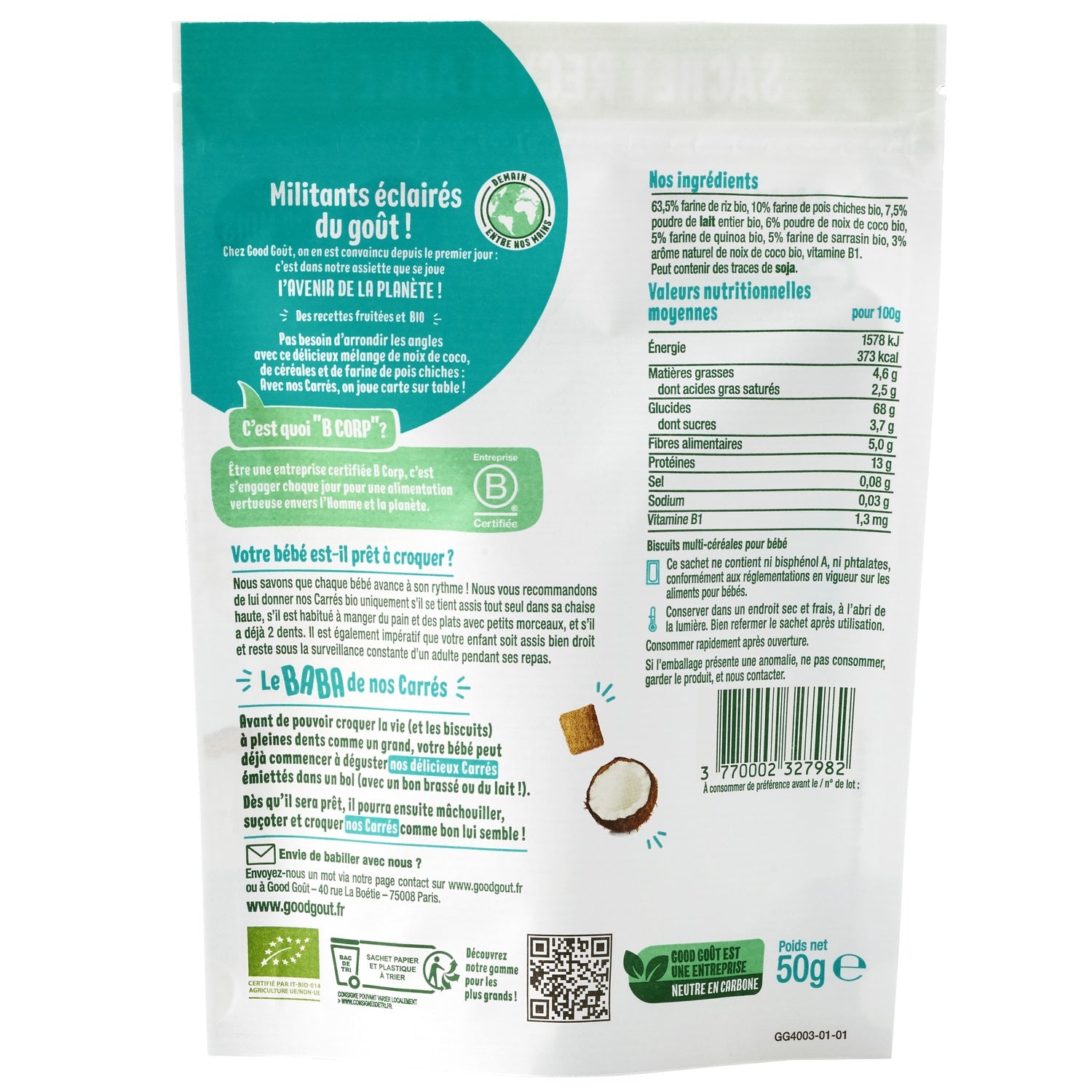 Enlightened taste activists! At Good Goût, we've been convinced since day one: the future of the planet is at stake on our plates! Fruity and organic recipes! No need to cut corners with this delicious blend of coconut, cereals, and chickpea flour: with our Squares, we're playing with our cards on the table!