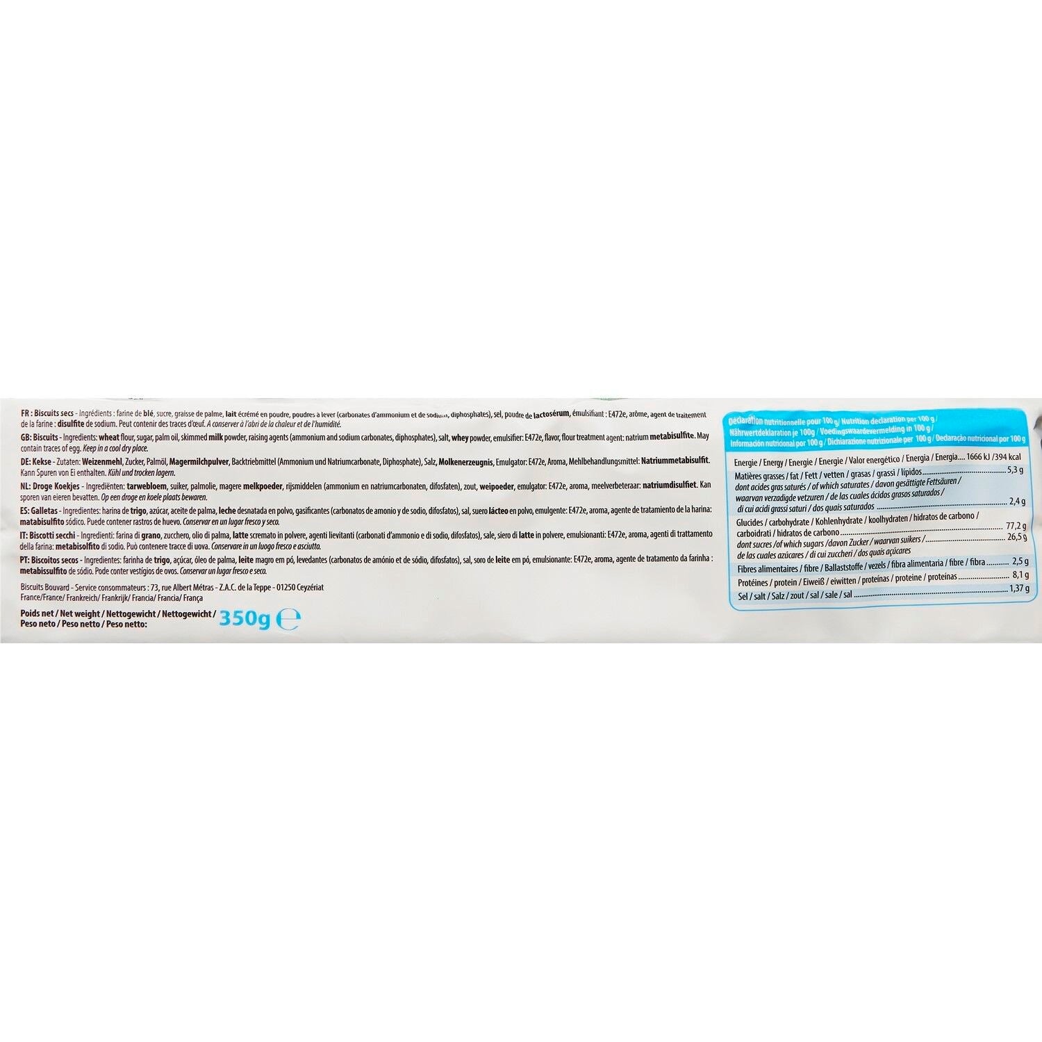 WHEAT flour, sugar, palm fat, skimmed MILK powder, raising agents (ammonium and sodium carbonates, diphosphates), salt, WHEY powder, emulsifier: E472e, flavoring, flour treatment agent: sodium DISULFITE.