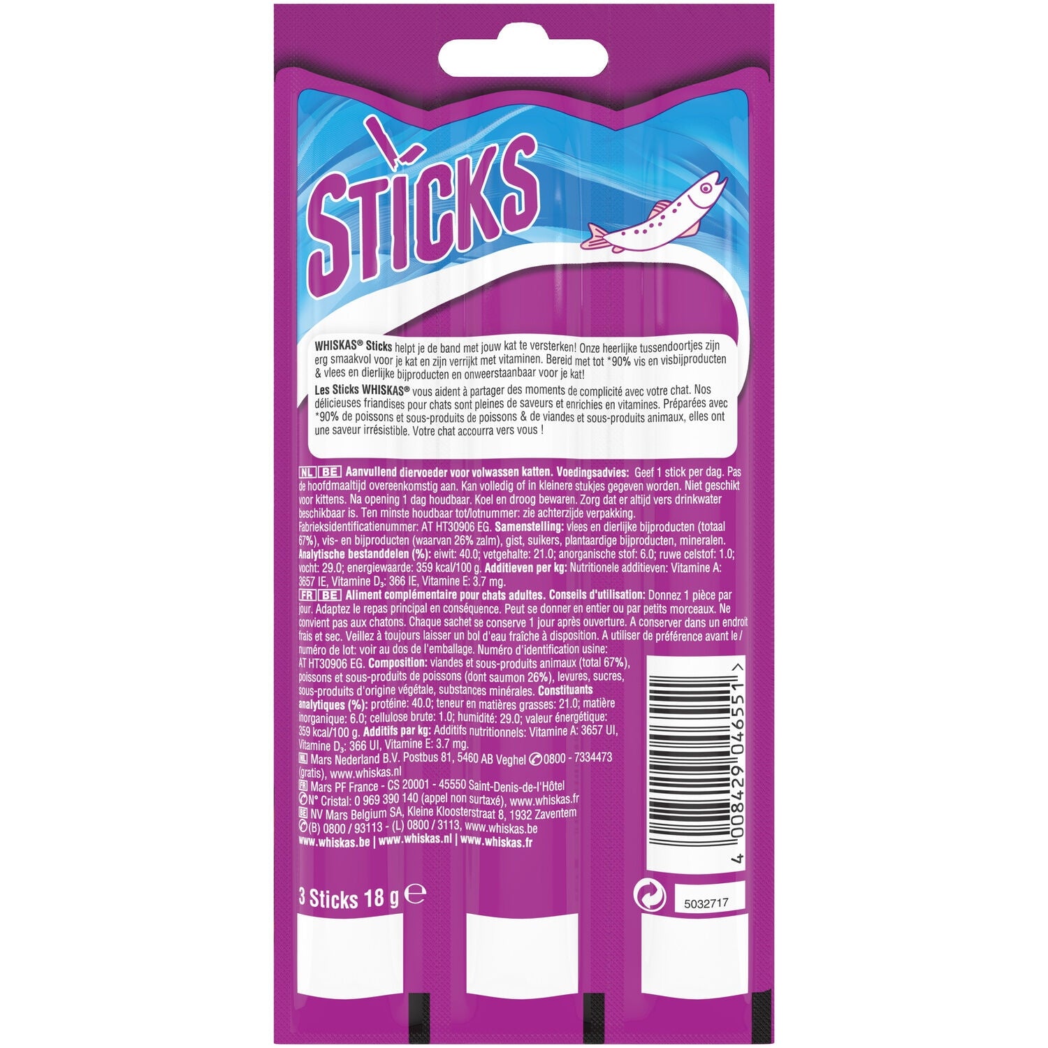 Whiskas® Sticks cat treats are available in a bag of 3 sticks.