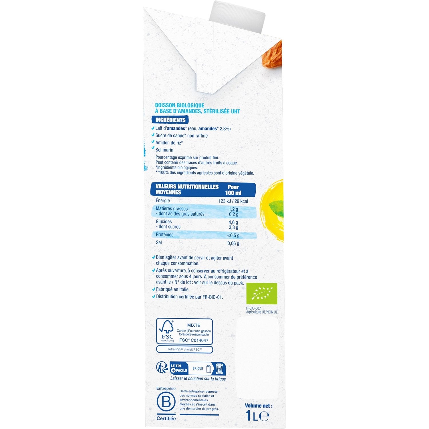 ALMOND MILK* (water, ALMONDS* 2.8%), unrefined cane sugar*, rice starch*, sea salt. Percentage expressed on finished product *Organic ingredients