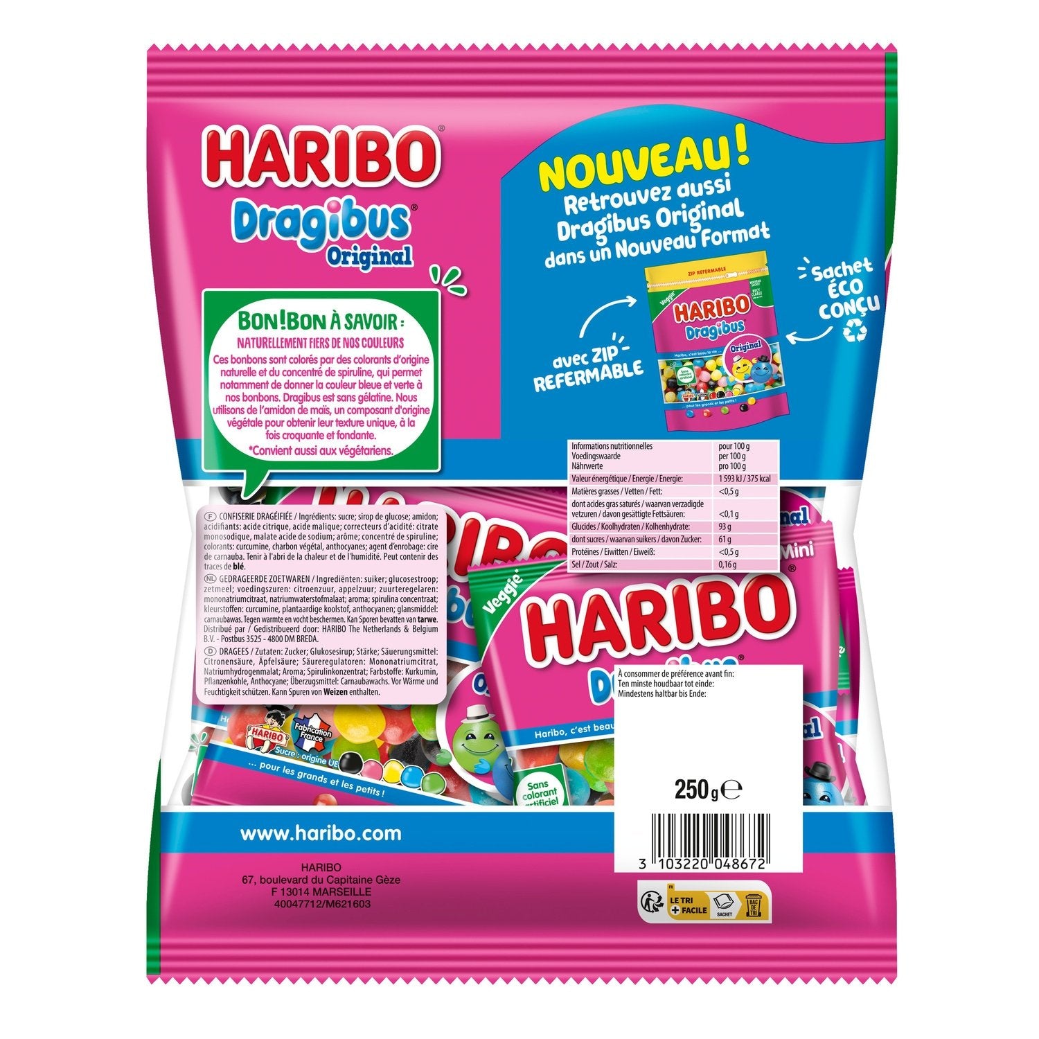 Find HARIBO Dragibus Original in a Multipack format containing Dragibus mini-bags! An ideal format for nibbling or carrying! Dragibus Original is veggie, it is suitable for vegetarians.