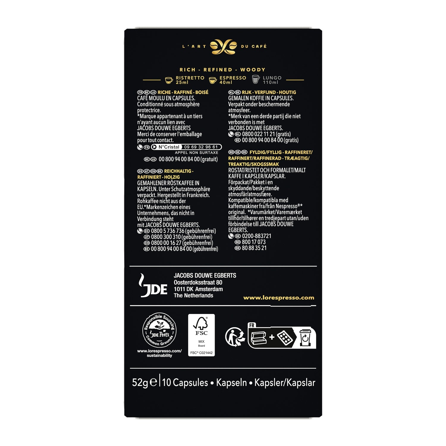 Responsibly sourced coffee: Our responsible sourcing program and JDE Peet's Common Grounds initiative are just some of the ways we're helping to make a better impact on the planet by helping coffee farmers and communities in coffee-growing regions thrive sustainably. Capsules made in France and recyclable.