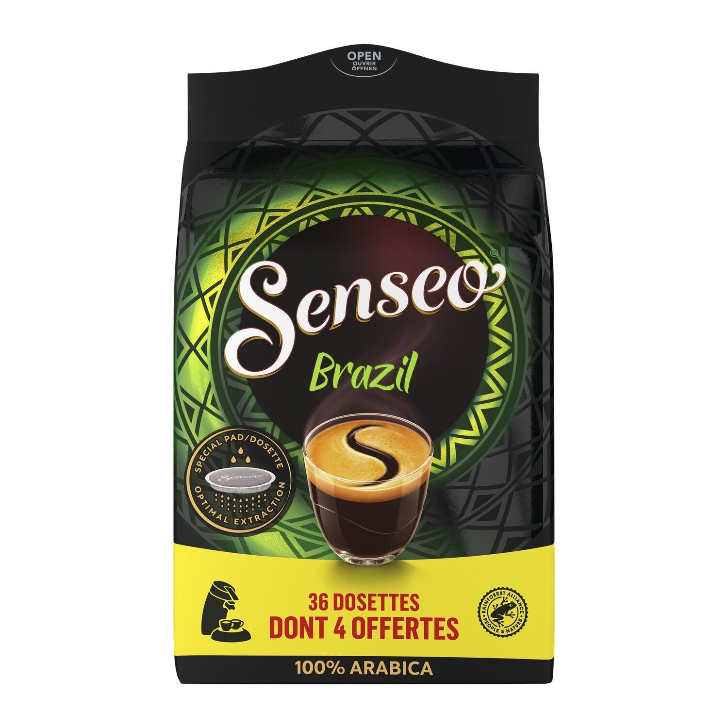 A little taste of adventure with the smooth and balanced flavor of these 100% Arabica beans, lightly roasted and harvested in the tropical regions of Brazil; where the environment and climate provide the ideal conditions for growing some of the finest coffees in the world. A 100% Rainforest Alliance certified coffee, grown responsibly, both environmentally and socially. Format: bag of 36 pods. Bag color: black Pods compatible with SENSEO ® coffee machines manufactured by Philips: SENSEO ® Original, Original+, Select, Quadrante, Viva Café, Viva café Eco, Switch coffee makers... Whether you like it in ristretto, espresso or long, with or without milk, with family or at the office, each choice of SENSEO ® pod is the beginning of a great experience. Choose your favorite coffee from a wide range of varieties, and discover all the aromatic richness of our coffees, now in a compact pod.