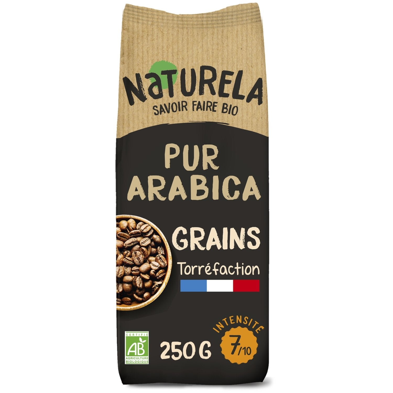 Discover Naturela pure Arabica coffee beans and let yourself be carried away by its rounded, balanced cup and lightly roasted notes. Organic, grown in Latin America and slow-roasted in France, this is the essential breakfast coffee.