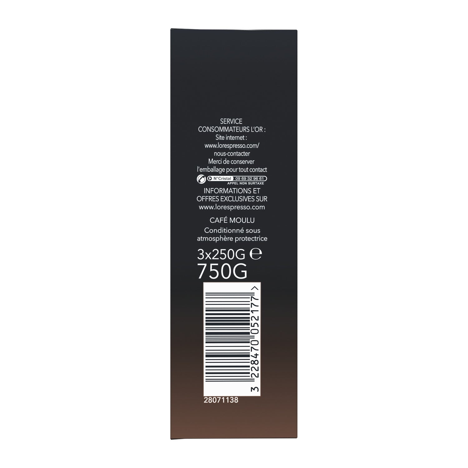 A 100% Arabica ground coffee with an intense flavor. It is thanks to the selection and blending of the finest Arabica beans that L'OR intense reveals its full aromatic richness. 750-gram pack of ground coffee. Intensity level 7. 100% roasted in France, this coffee is bagged directly after roasting. The Aromal Lock freshness valve allows the bag to be resealed while preserving the intense taste and aromas of L'OR coffee. Without doubt the best coffee in the world. Ground coffee for filter coffee makers is ideal for sharing a good coffee with family or friends. Whether you like it black, hazelnut, or with milk, long or espresso-style, everyone will find something to suit them.