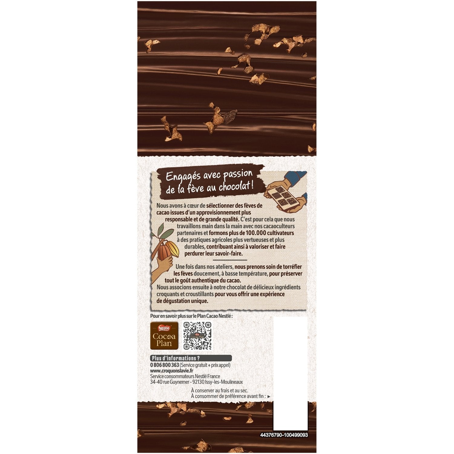 Extra-fine chocolate with pure cocoa butter and no artificial flavors. Nestlé is committed to supporting cocoa farmers with the Rainforest Alliance. Cocoa beans carefully selected as part of the Nestlé Cocoa Plan.
