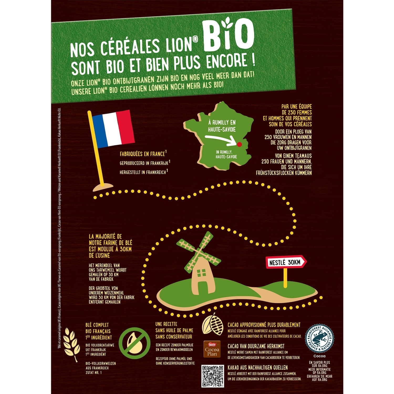 Discover your LION cereals in organic version! Always so delicious, LION ORGANIC cereals are a unique blend of caramel and chocolate with an irresistible taste to make you roar with pleasure in the morning. Made in France, LION ORGANIC cereals contain whole wheat, fiber and are palm oil and artificial flavor free*! And to vary the sensations and pleasures, also find CHOCAPIC ORGANIC, delicious chocolate petals, NESQUIK ORGANIC, gourmet cocoa balls and CHEERIOS® ORGANIC cereals with a delicious honey flavor. *in accordance with organic farming regulations.