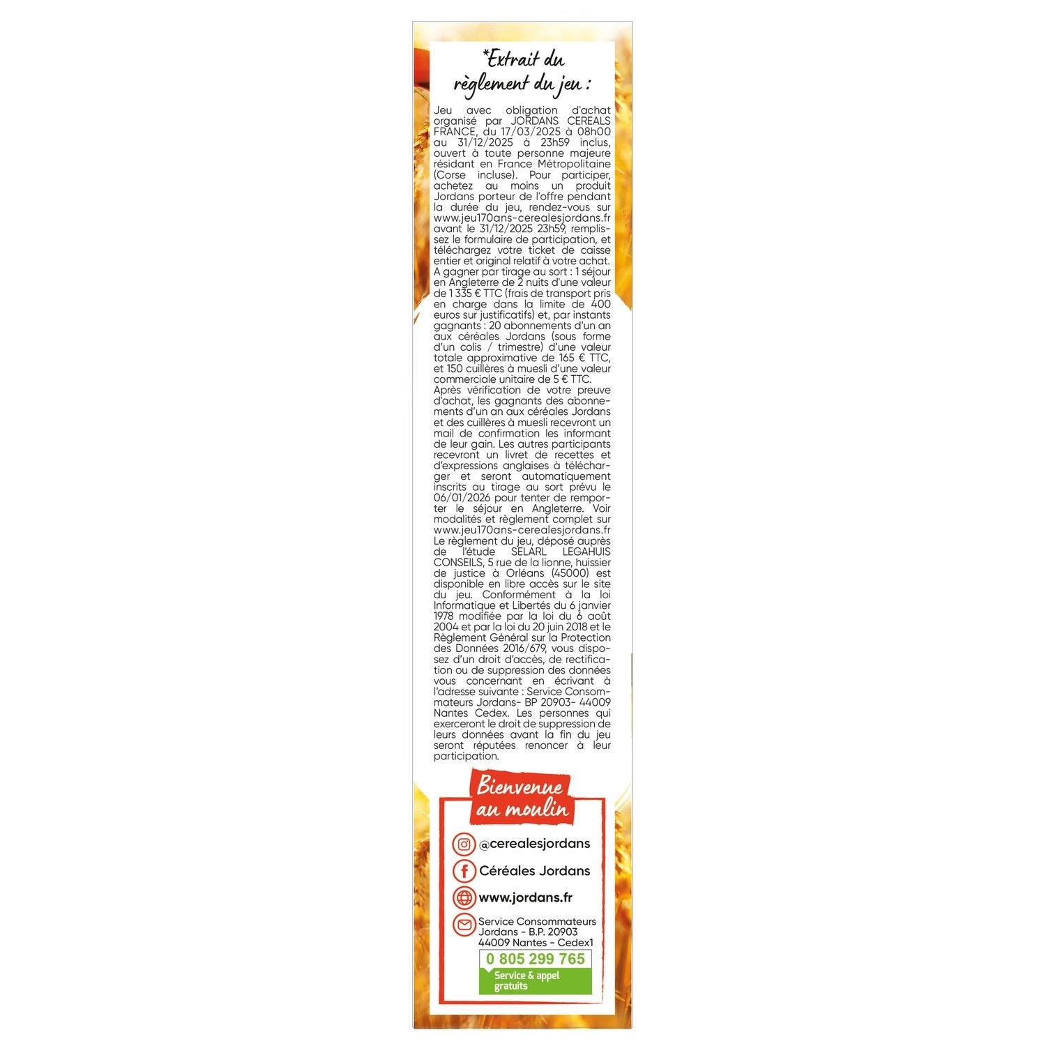 A delicious muesli made with three whole grains (oats, wheat, barley) rich in fruits & nuts, and fiber for a tasty and energy-packed breakfast. Always without coloring or preservatives!
